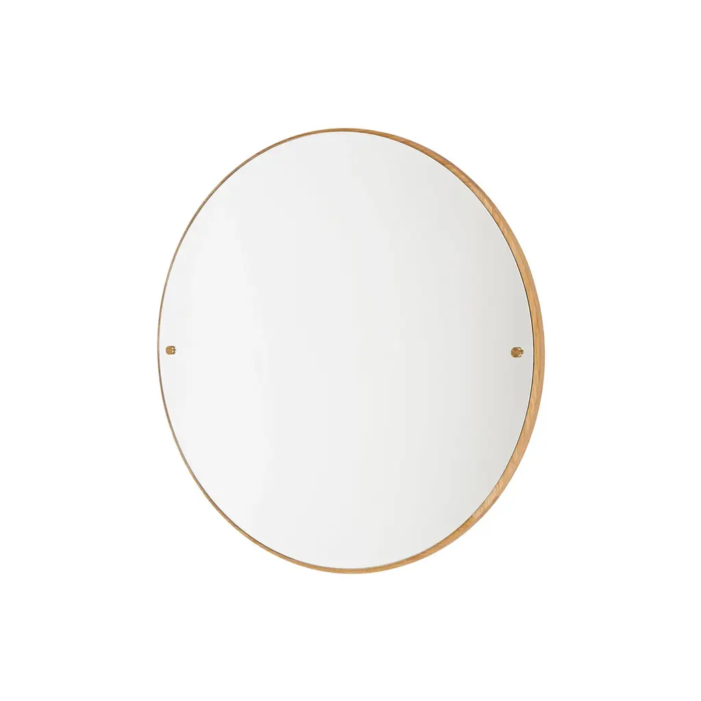 The Radius Wall Mirror from Uttermost presents a minimalist circular design anchored by four decorative medallions. Fashioned by Matthew Williams, the pristine mirror glass rests within the slim frame with a polished edge, adding refinement to the contemporary styling. Made from premium iron and MDF, this piece pleasantly balances trendy aesthetics with traditional accents. The bold framework and lustrous medallion details transform this functional mirror into an artful statement piece perfect for enriching contemporary and ultra-modern interior spaces.