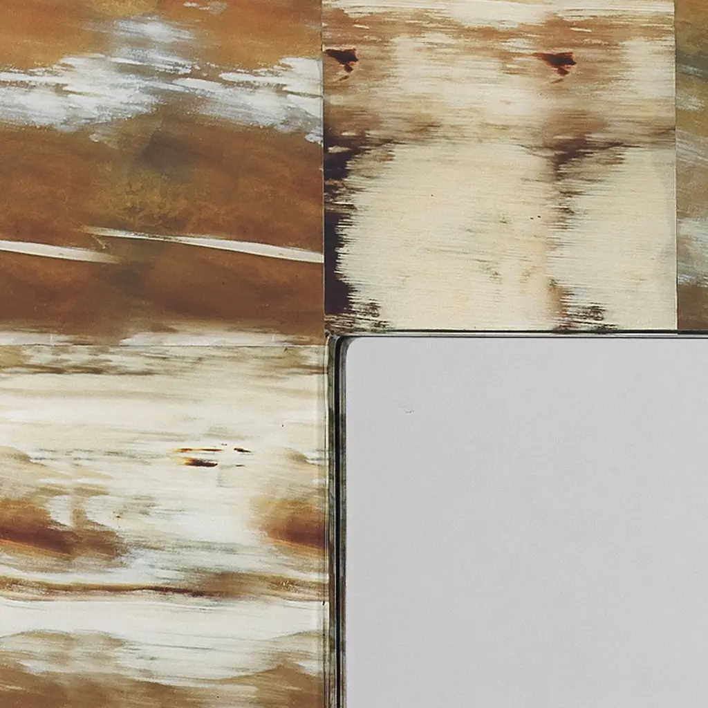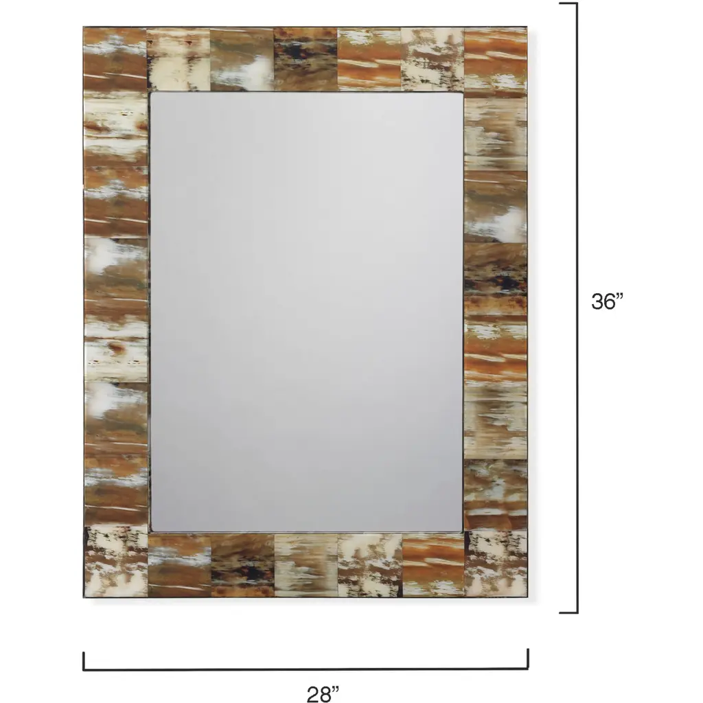 Our best selling faux horn pattern with elaborate color variations is placed on this ever so simple rectangle shape, creating the perfect neutral mirror.