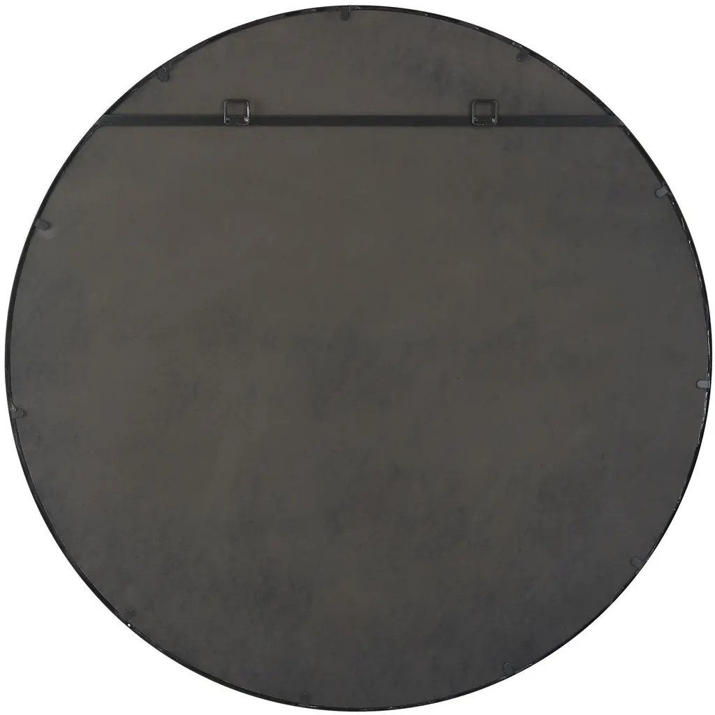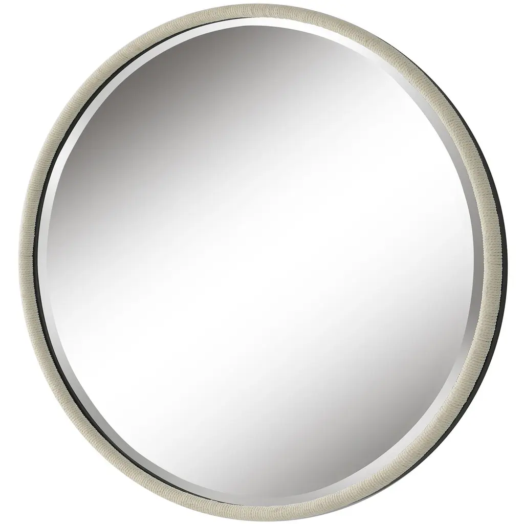 The Ranchero Round Mirror Adds An Updated Coastal Flair With A Black Iron Frame Featuring A Rounded Profile Wrapped In White Braided Rope. Mirror Has A 1 1/4" Bevel.