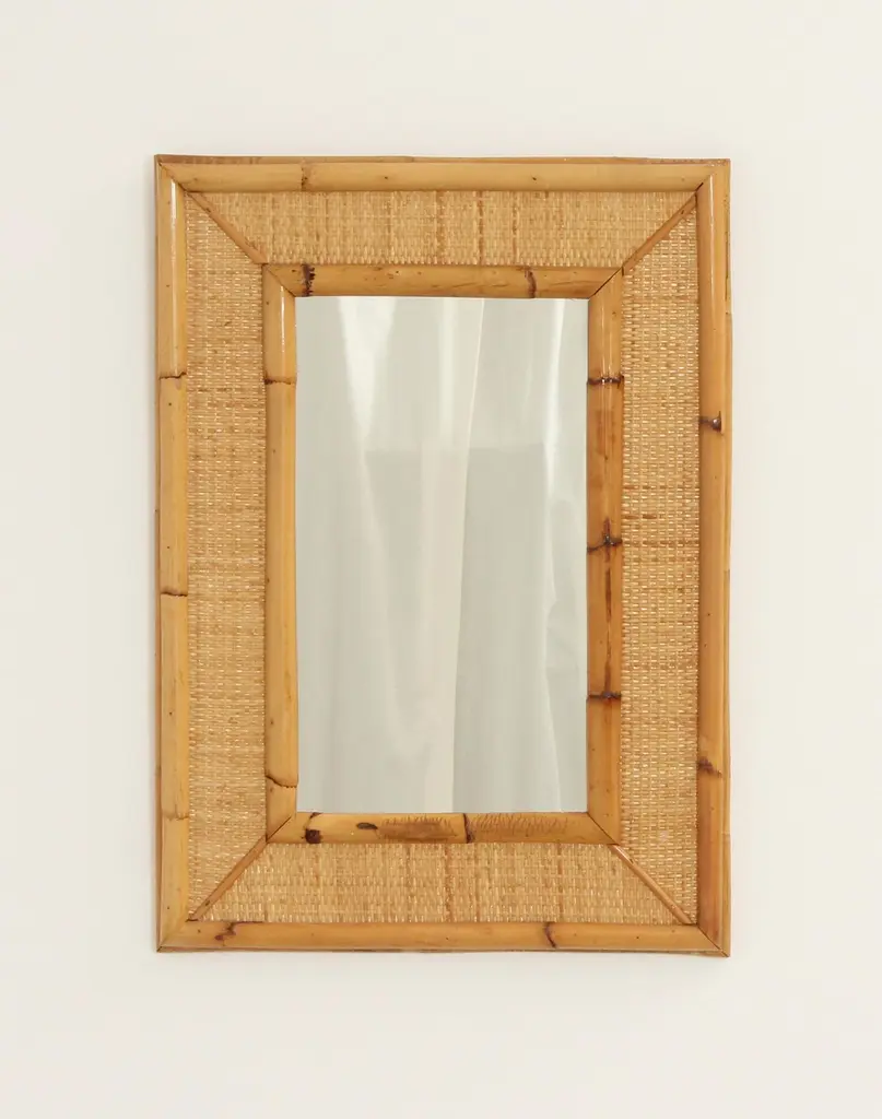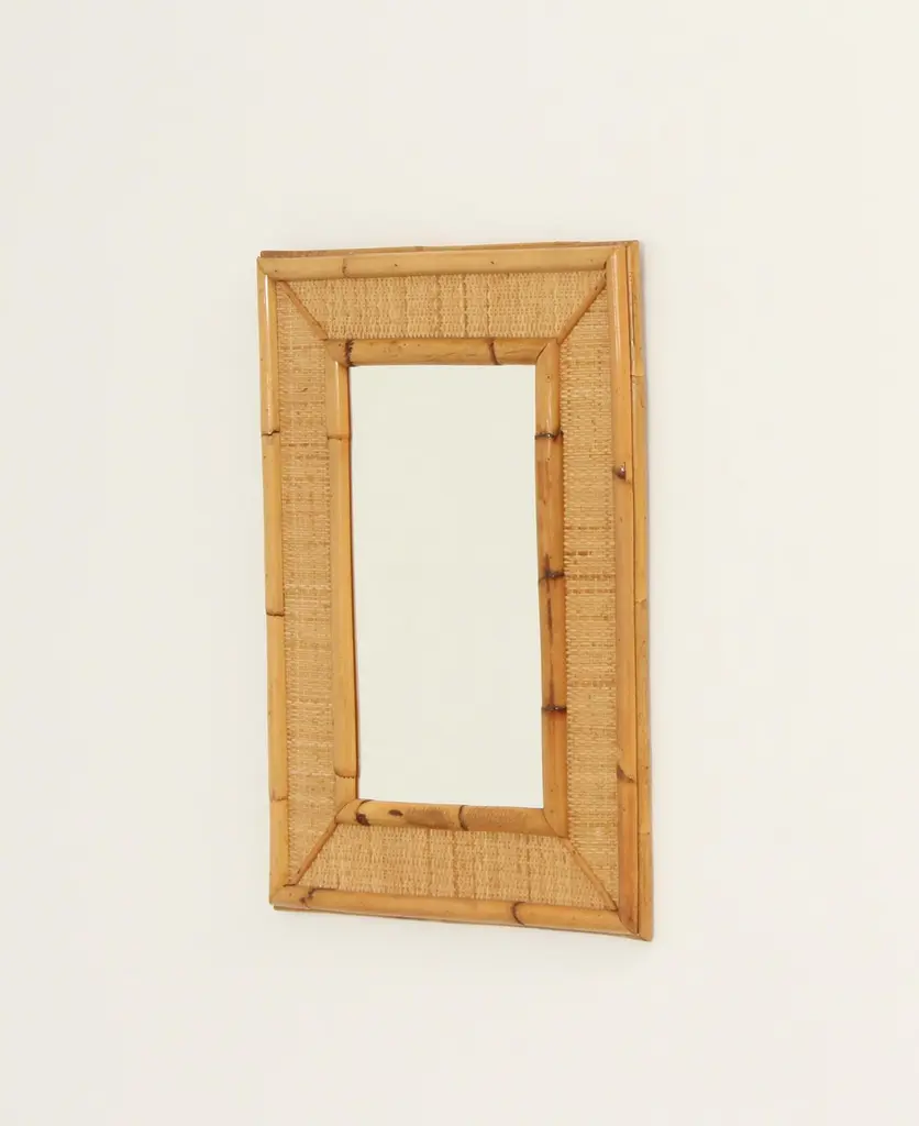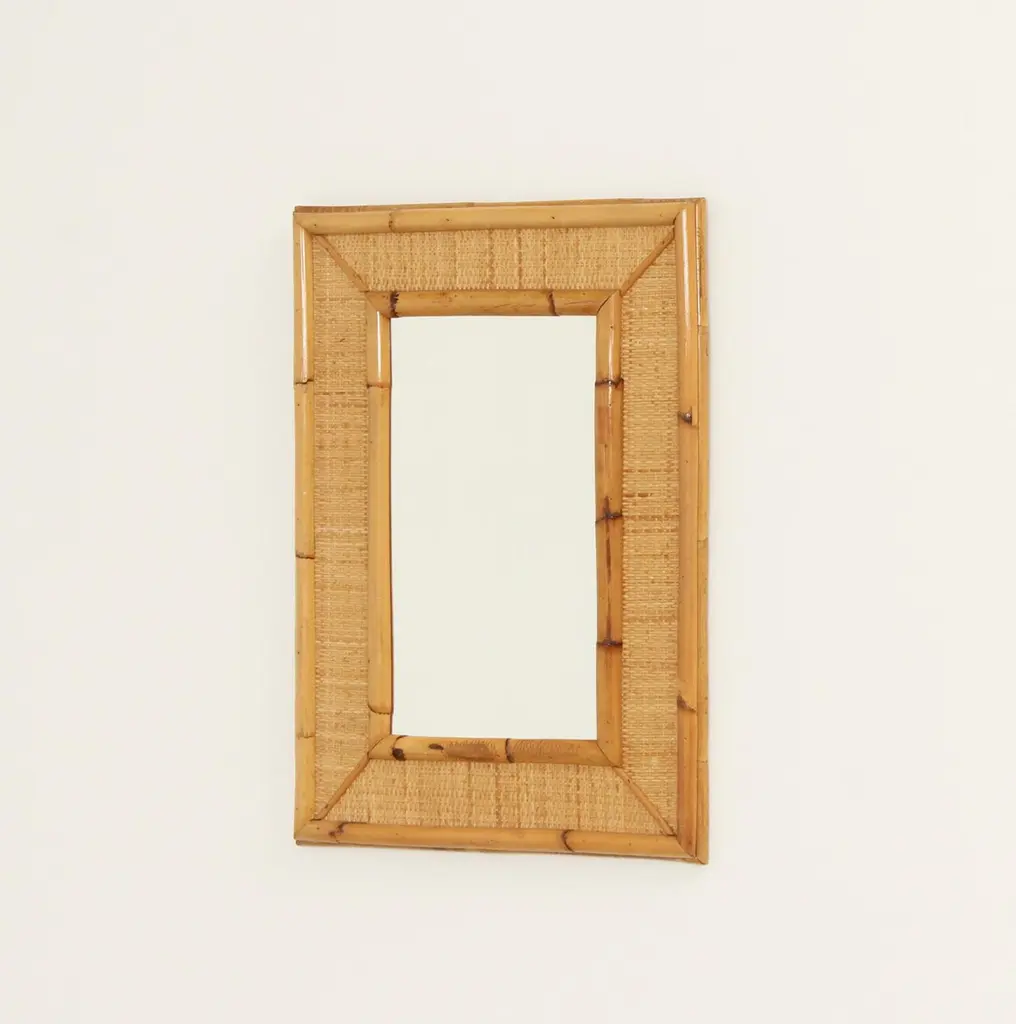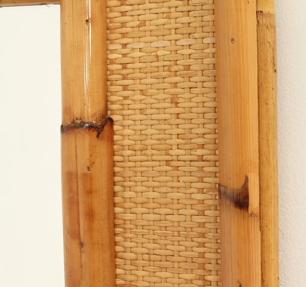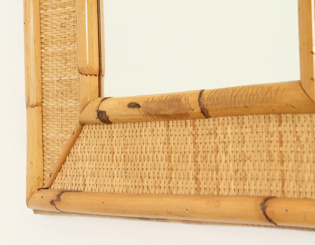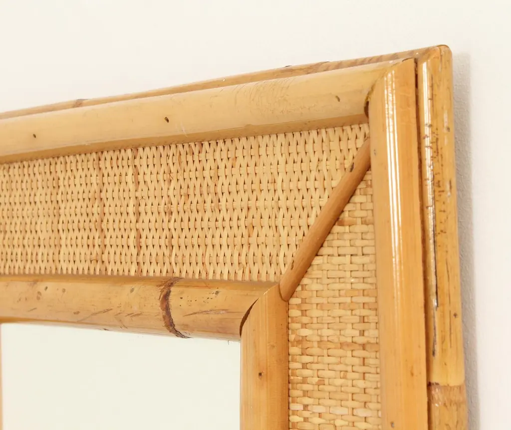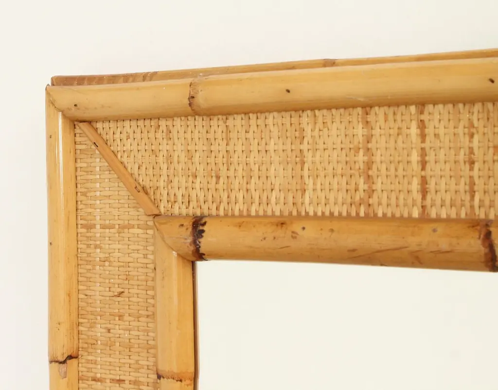 Rectangular wall mirrors from 1970's, Spain. Woven rattan and cane frame. Very decorative per unit or placed together.