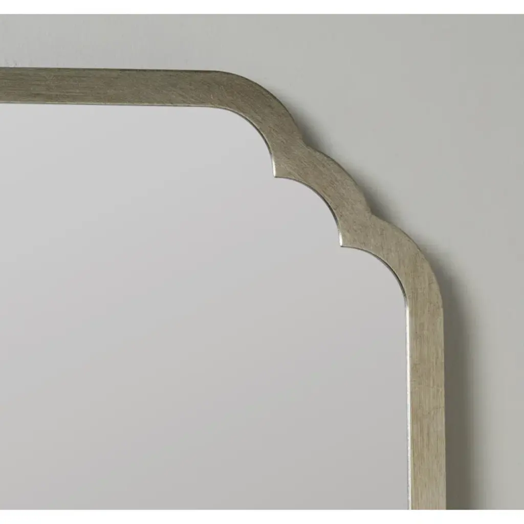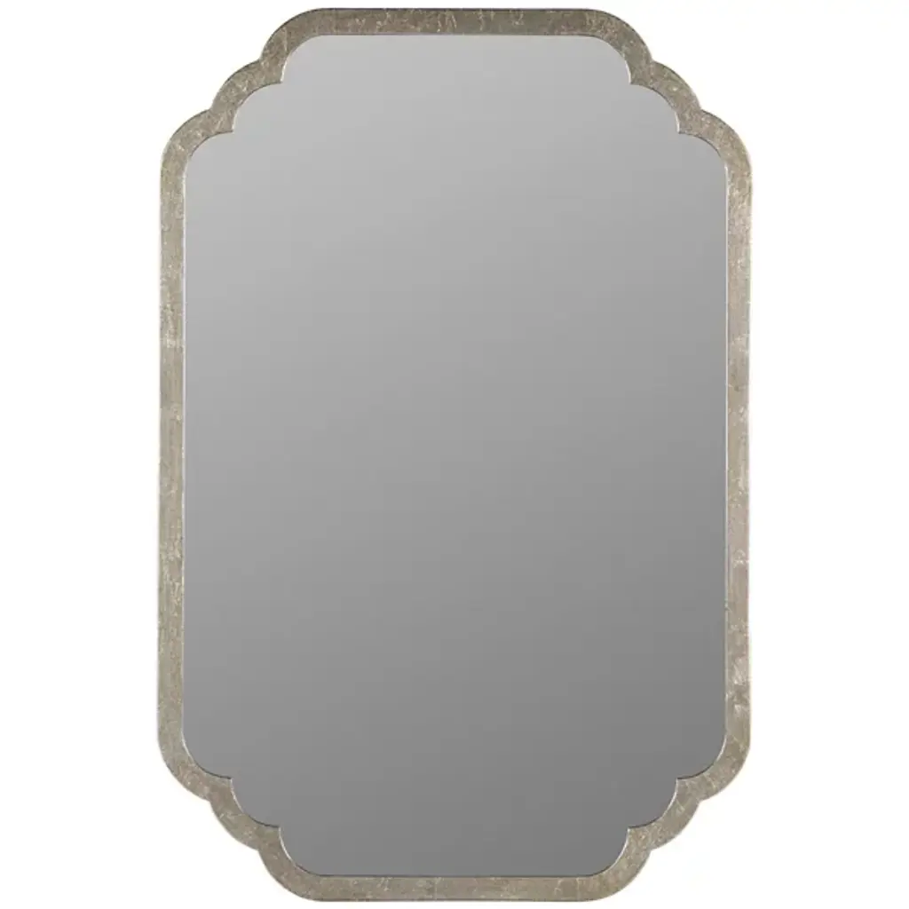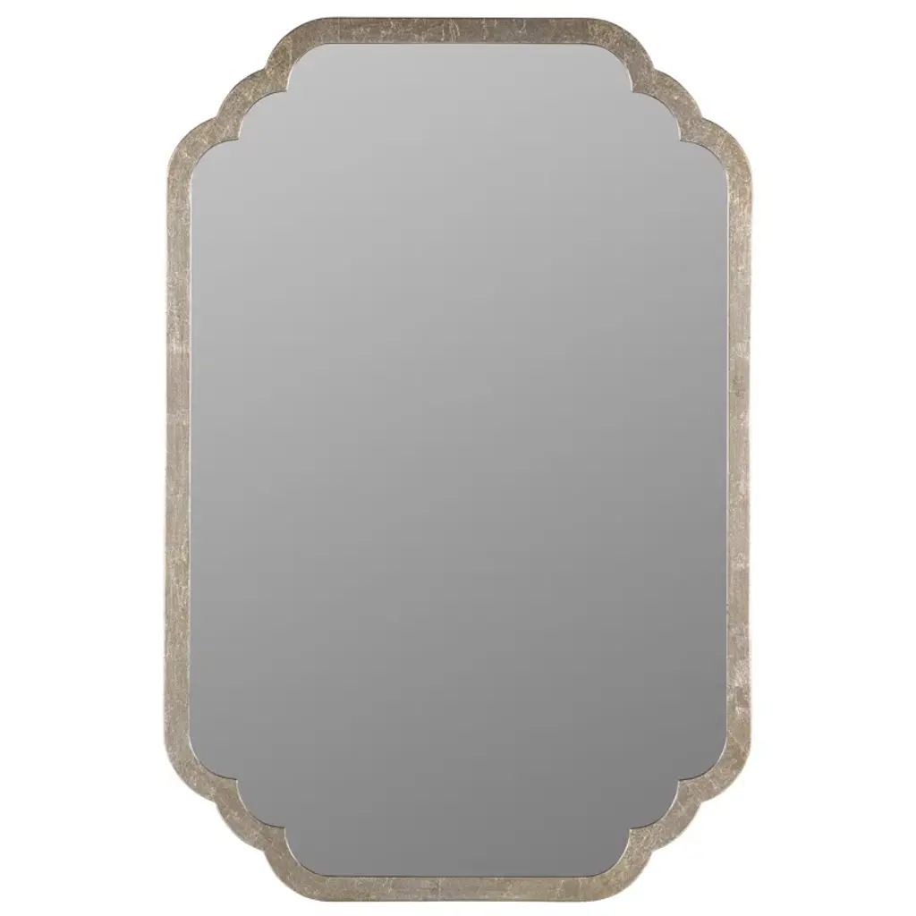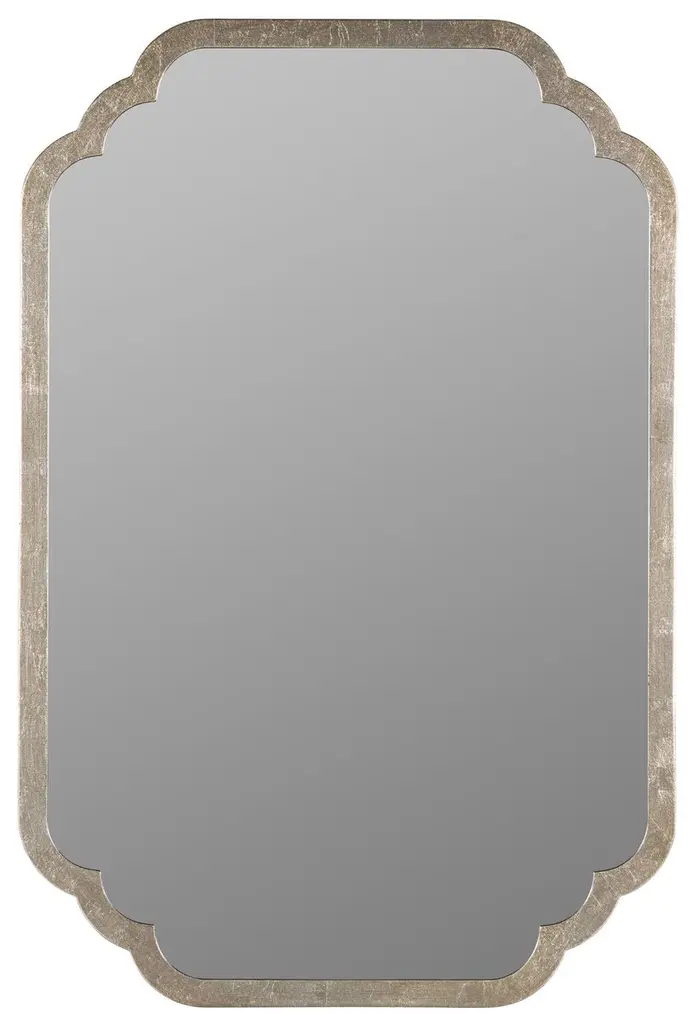 This accent mirror features a distinctive silhouette and a vintage-inspired metallic hue that brings a bold, boho look to any wall. It has a classic frame with round, scalloped edges for a striking sense of dimension and an Art Deco vibe. Made from engineered wood, it comes in a finish that makes it a great flea-market find. Measuring 3' tall and 2' across, this mirror makes a statement anywhere you mount it, bouncing natural light around to make your space appear larger. Plus, we love that this wall mirror has fog-free glass, so condensation doesn't cloud the surface.