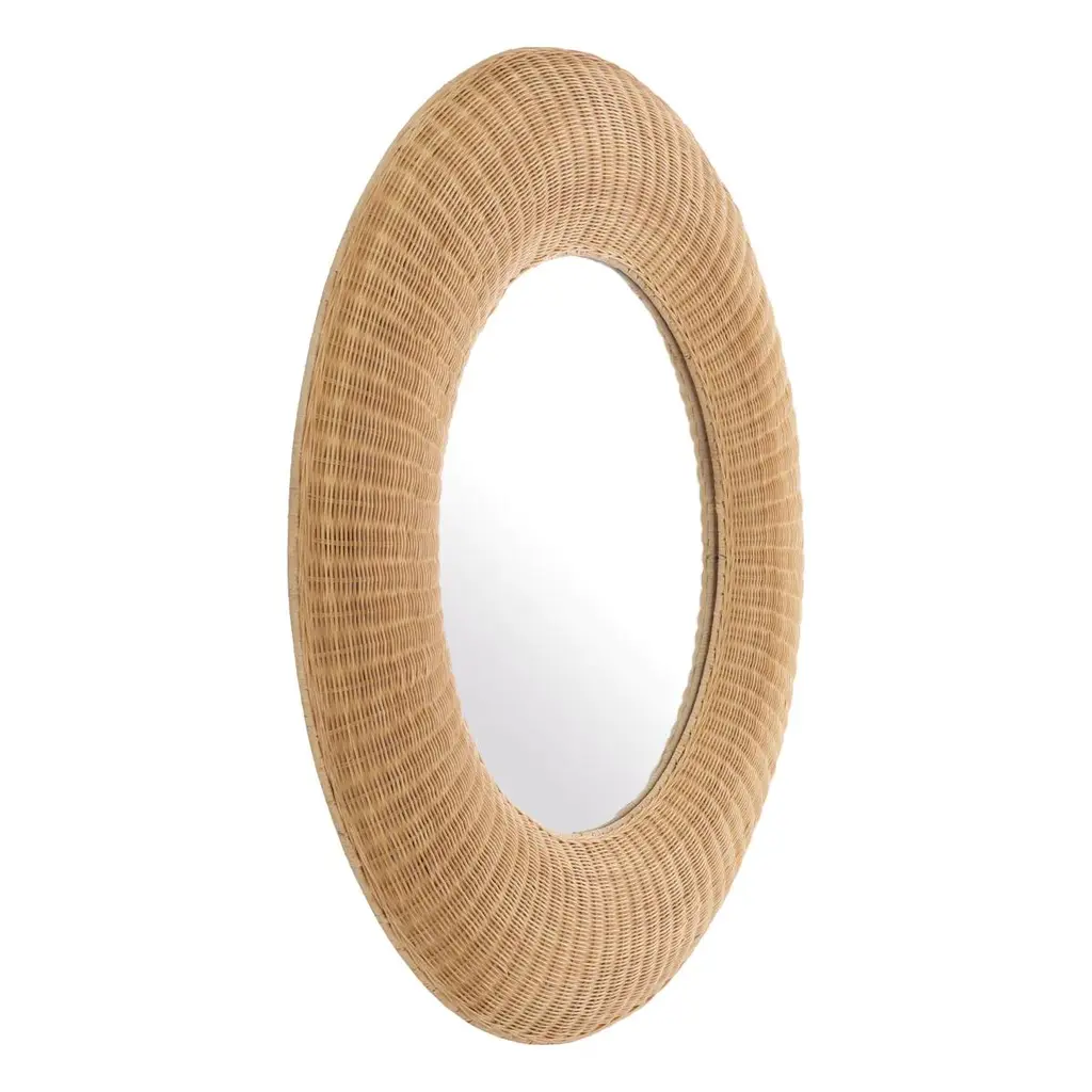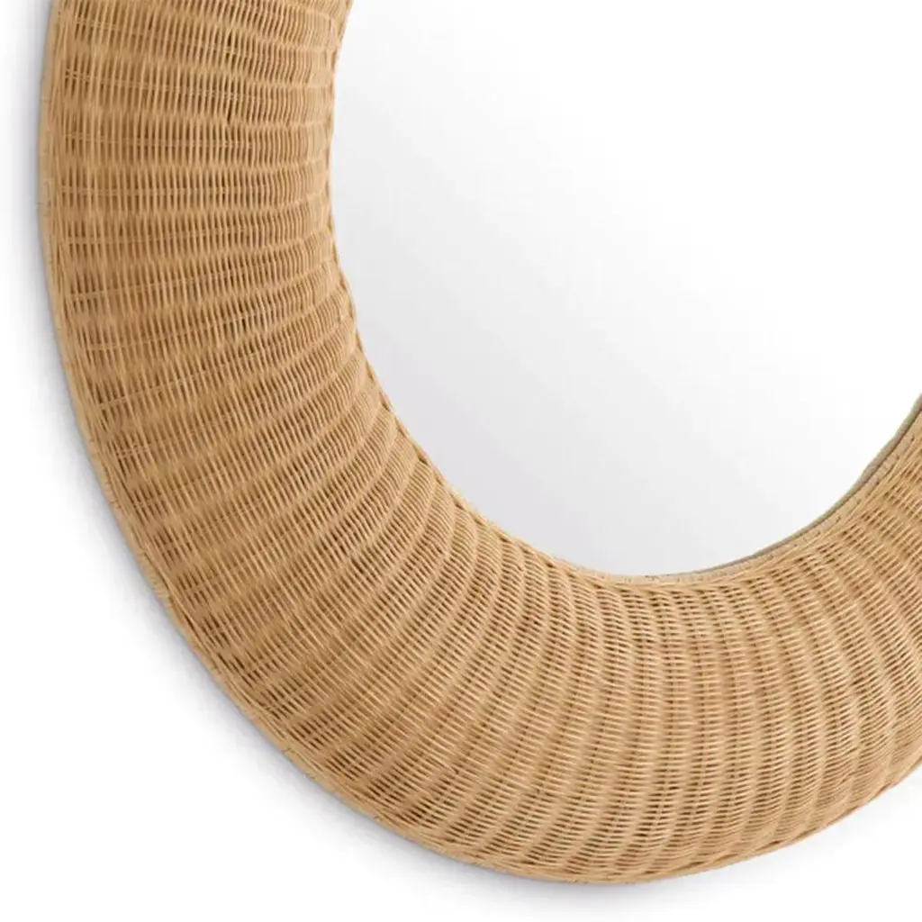 Mirror Rattan Natural Round with all frame inrattan in natural finish with iron structure underrattan, with round flat mirror glass with woodenback mirror.