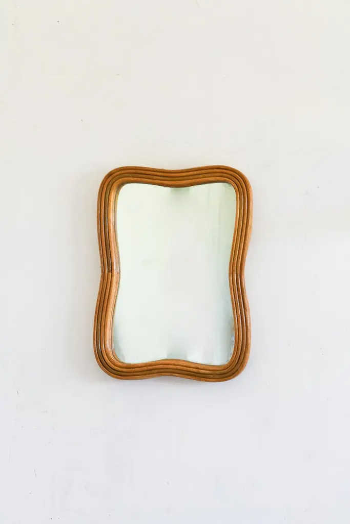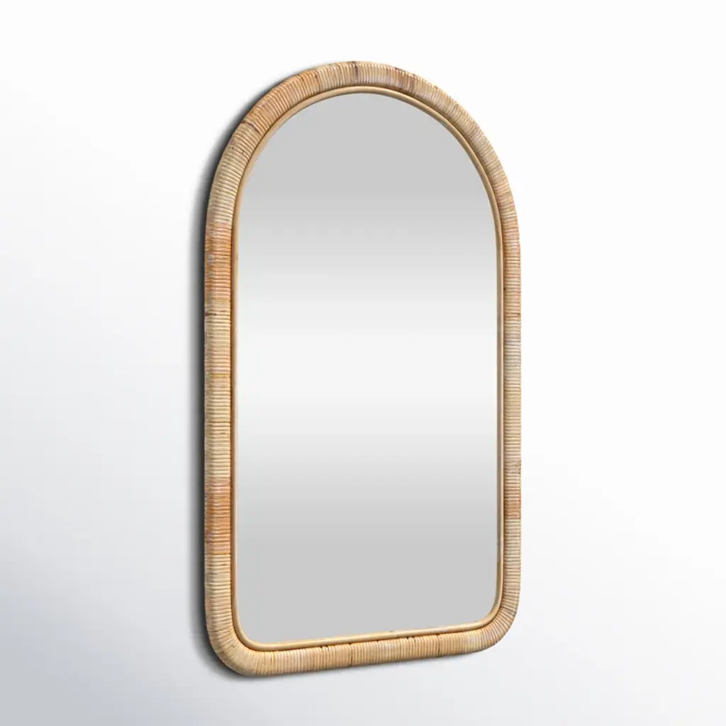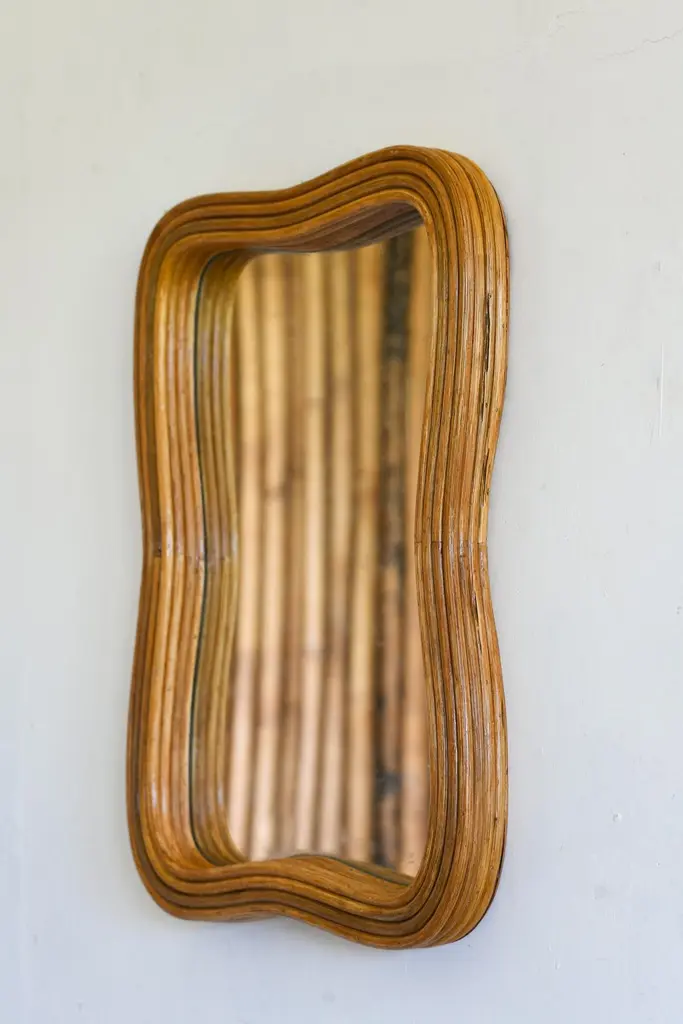 This beautifully crafted wall mounted mirror is made of pencil reed rattan, providing a unique and elegant texture. Its durable design adds a touch of sophistication to any room while providing the functionality of a traditional mirror. Elevate your home decor with this stylish and versatile piece.