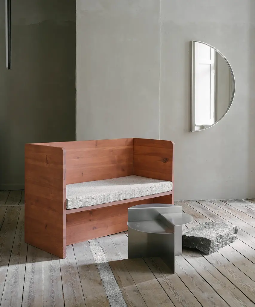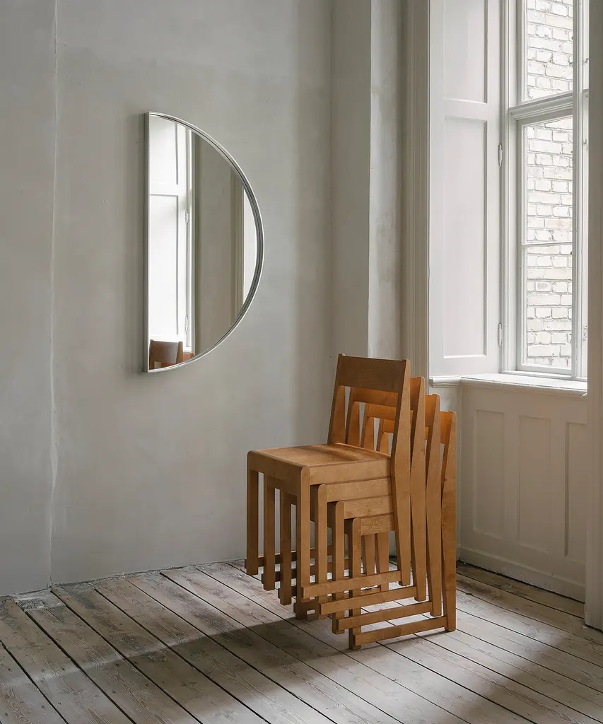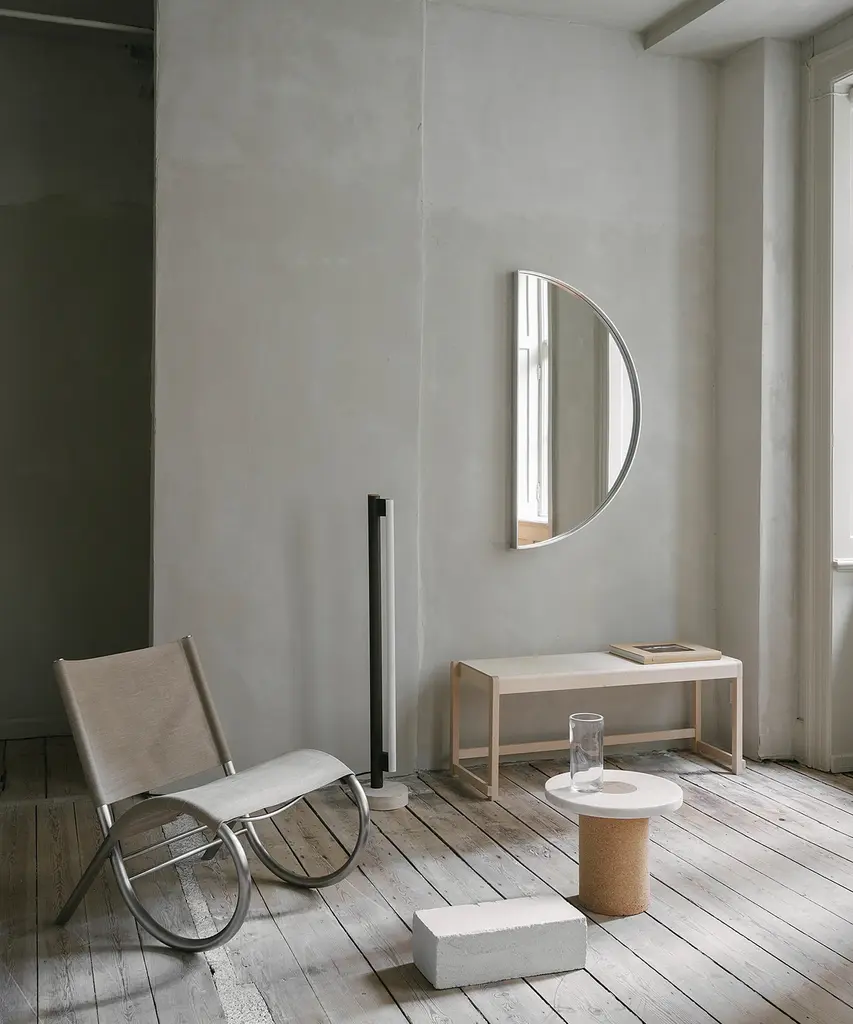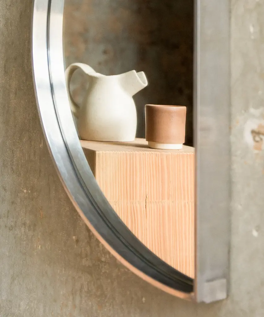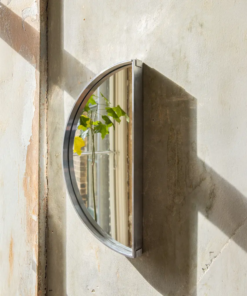 The Recess Mirror Collection is a series of highly versatile, aluminum-framed mirrors. By combining curving semicircular forms with bold angles and the raw beauty of industrial aluminum, the Recess Mirrors are at once playful and distinctly sophisticated. Each mirror in this collection can be hung either vertically or horizontally. Designed by Jonas Trampedach for Frama - an interior and product design studio based in Copenhagen. The studio is a dynamic testing ground for new designs and projects, embodying their classical, yet boundary-pushing approach.