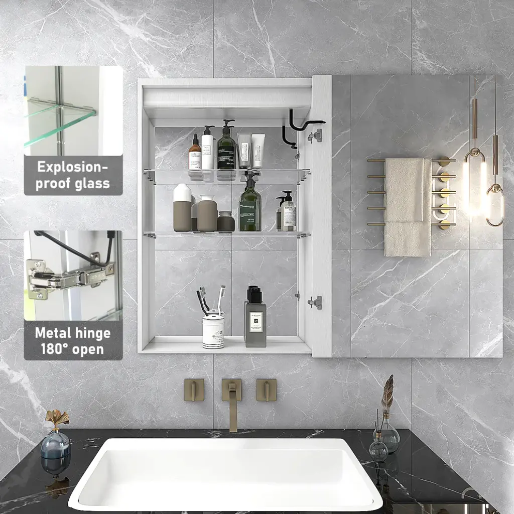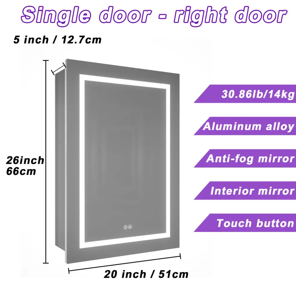 Modland small medicine cabinets are perfect for small bathrooms. The small size and simple style can be matched with a single small sink at will.These cabinets are made of high grade aluminum alloy. The inner layers are thick glass panels and the full waterproof, rustproof and dustproof design keeps your cabinet hygienic and tidy at all times without any cleaning worries. We provide two ways to open the door. You can choose the right door products or the left door products to meet the needs of different bathrooms. There are two touch switches for this cabinet, which control the main light and the anti-fog function respectively. The separate control function allows first-time users to know how to use it.Quality is guaranteed. If it is broken, it can be replaced or returned. Please feel free to buy."”"”What''s Included?2 Shelves IncludedLighting IncludedPower Source: HardwiredETL ApprovedType of Bulbs Used: LEDWatts of Bulbs: 18W"”"”Features:â—?ã€?Multiple Installation Methods】 The medicine cabinet supports embedded and wall-mounted installation, you can quickly hang it on the wall, or install it in the wall.â—? ã€?All-aluminum Material】The bathroom medicine cabinet is made of all-aluminum alloy material, which has the characteristics of light weight. Even if the wall-mounted installation is used, it will not cause a burden on the wall. All-aluminum material has good pressure resistance, anti-scratch effect, strong and durable.â—? ã€?LED Mirror with Anti-Fog】This medicine cabinet has a mirror and has an LED light source. With a touch switch, you can see yourself clearly when you press it lightly. After the shower, the anti-fog button can be turned on, and the perfect you can still be clearly displayed.â—? ã€?180-Degree Wide-angle Door】 Compared with other ordinary medicine cabinets, the mirror surface of Modland medicine cabinet can be unfolded 180°, and there are 2 mirrors inside the cabinet door. You can easily take the items in the cabinet while looking in the mirror.â—? ã€?Quality Assurance】Modland medicine cabinet has excellent quality and perfect product packaging, no need to worry about quality problems, we will help you solve all problems.