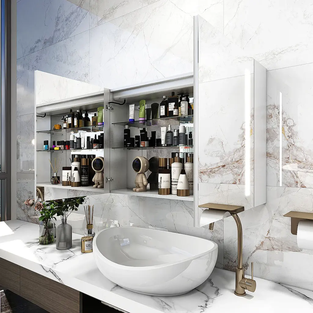 Recessed Or Surface Mount Frameless Medicine Cabinet W/ Led Light & 4 Mirrors