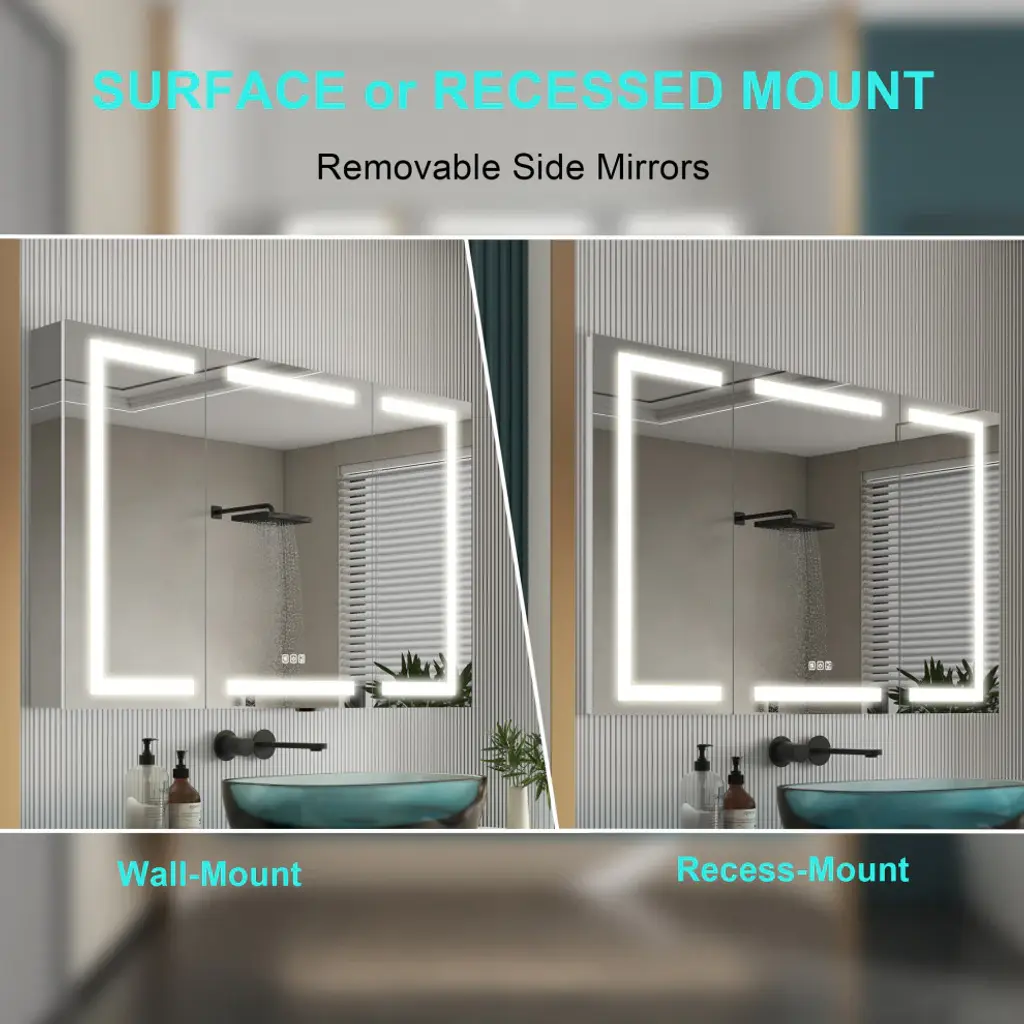 Recessed/surface Mount Led Medicine Cabinet Mirror With Defogger, 48"x30" Three Doors