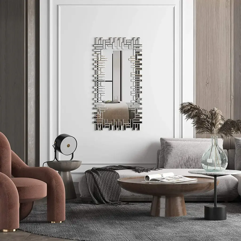 Features:- Eye-Catching Design: The elaborate design of this wall mirror is so eye-catching. Beautiful mirror is made by handcraft, and consists of a large mirror in the center and lots of irregularly placed small rectangle mirror surrounding it. With this mirror, you are sure to receive highly praise from whole family and guests alike!- Perfect Touch: The smooth edges of mirror are hand polished to ensure safety. US SGS compliant MDF board can prevent corrosion in wet environments. As a reflective surface, give room a better sense of light and space. This mirror is the perfect stylish addition to any home.- Safety Packaging: Using a very professional packaging method. First packed the mirror in a clear PE bag to ensure that there will be no stains during transportation. Then, using customized reinforced 5cm foam block, plastic corner protectors and 1cm master box. Pass a rigorous 12 point drop test at 30in height. Make sure that the mirror can be delivered safely to our customers.- HD Imaging: All mirror use high-end 4mm thick silver glass mirror, which provides a clear distortion-free reflection, and eliminate the common reflective distortion of low-end mirrors. The mirror''s clear image gives you the best visual experience.