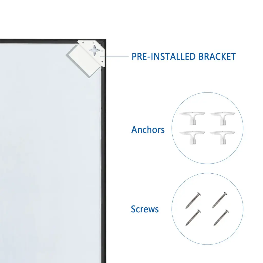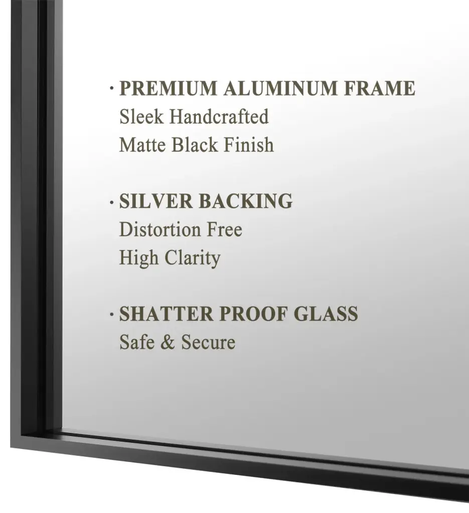 Add simple sophistication to any interior in an instant with this sleek modern framed mirror. Made of premium aluminum and mirror materials, the mirror is durable, waterproof and non-rusting. The mirror edge is protected by the aluminum frame from breaking and ensure beauty. Each piece has been polished carefully and metal bracket is pre-install on the back of the mirror. Perfect for use in bathroom, vanity, bedroom, living room, entrance. Features:High definition glass provides clear image without distortion;Anti-explosion layer helps to prevent the mirror from breaking;Mirror can be installed horizontally or vertically according to your demand;Hooks are pre-installed behind the backboard for a secure and stable installation;