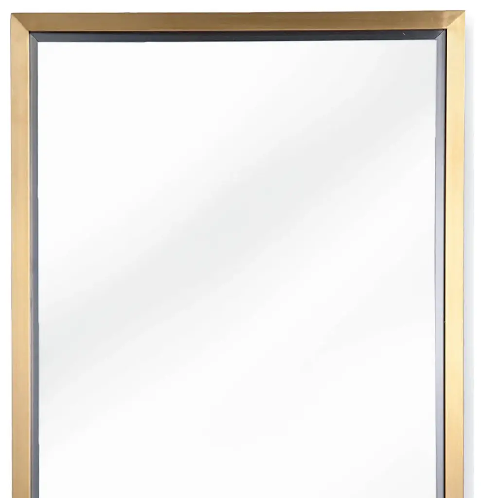 With its subtle natural brass frame and minimalist design, this rectangle mirror adds a finished touch to any room.