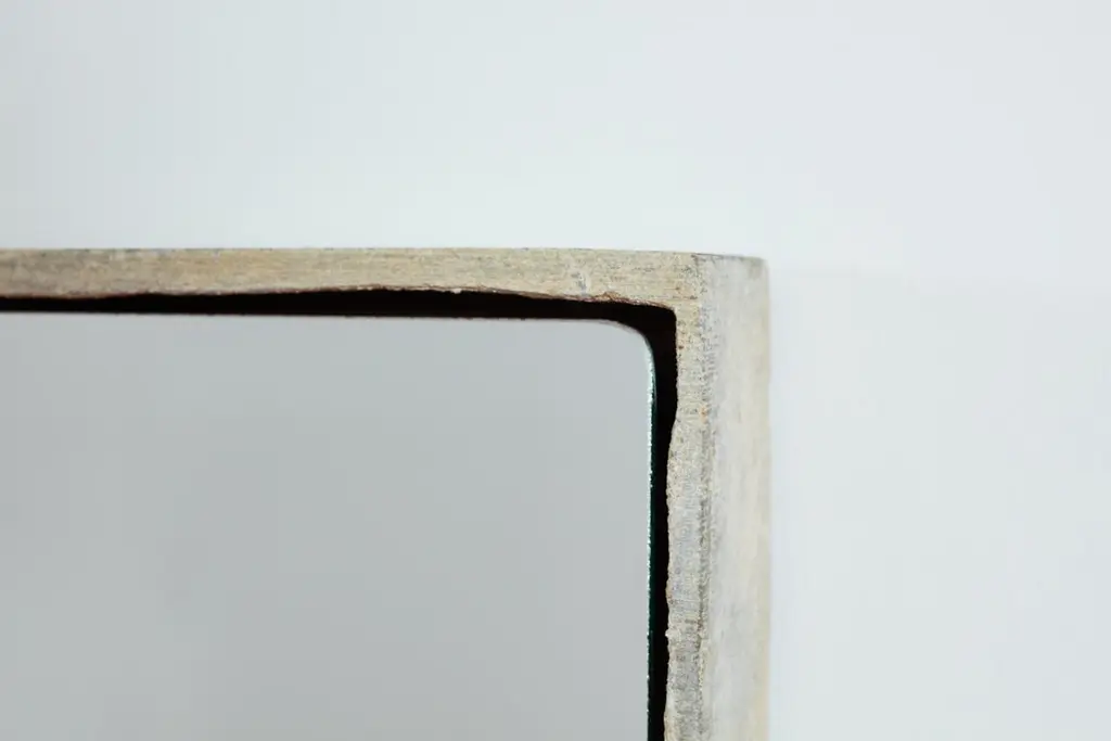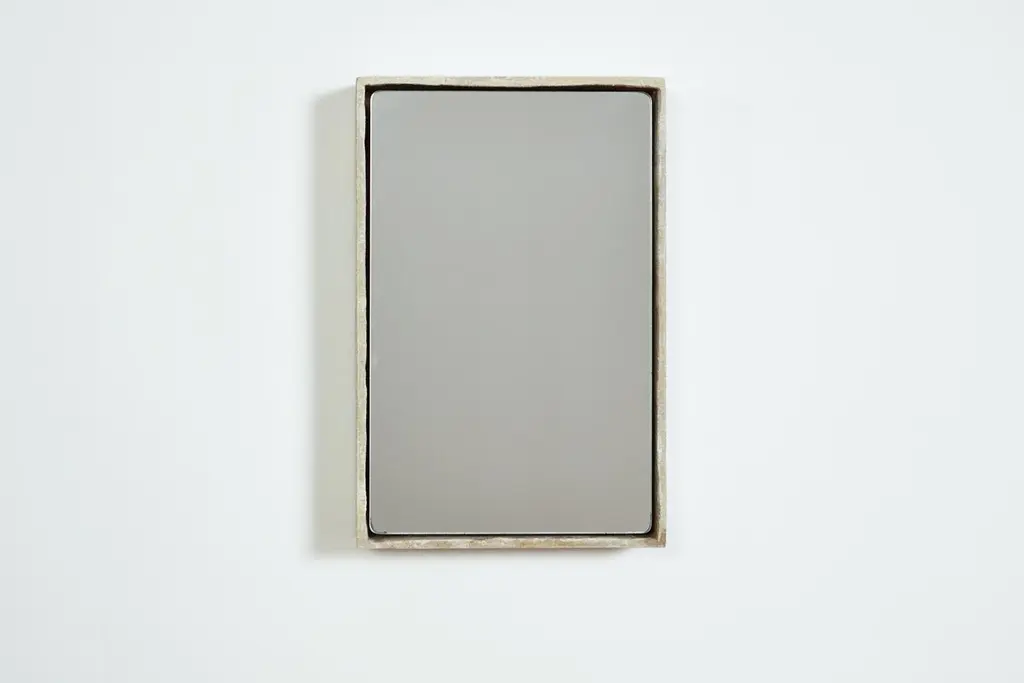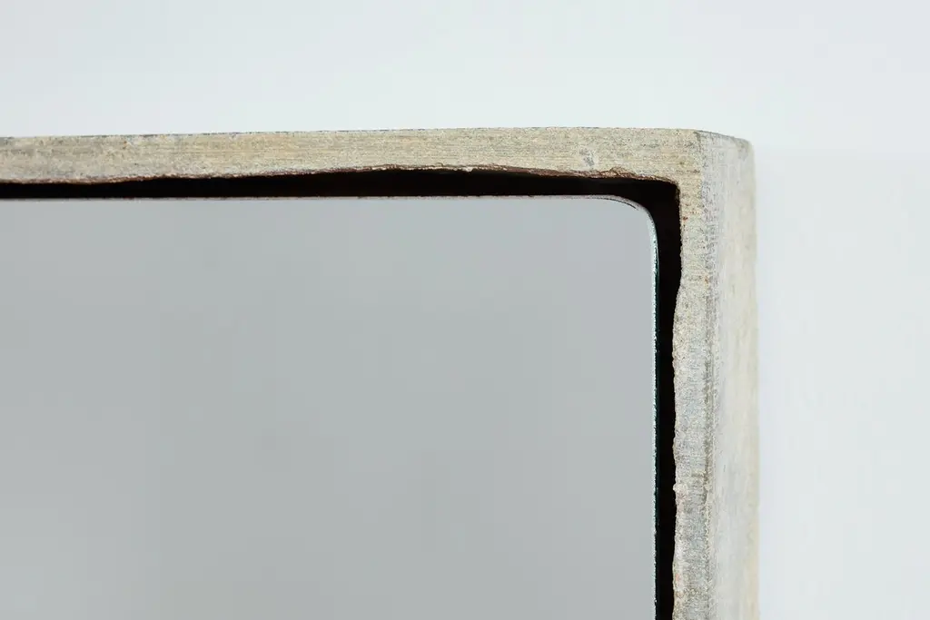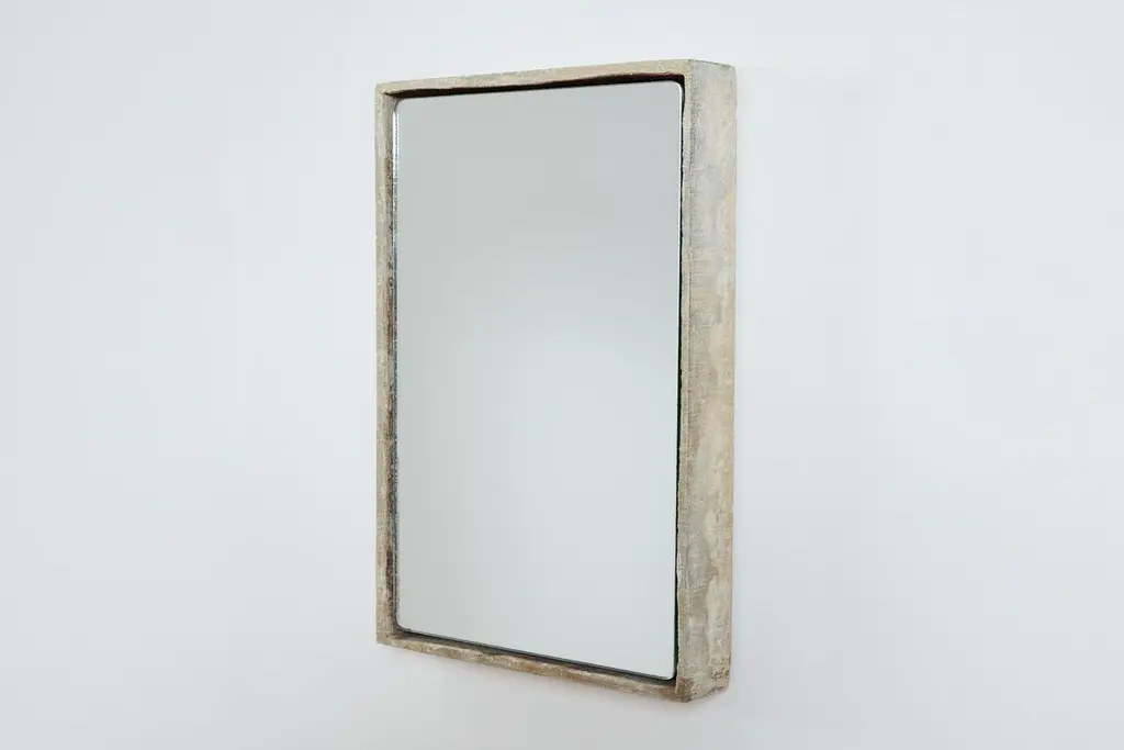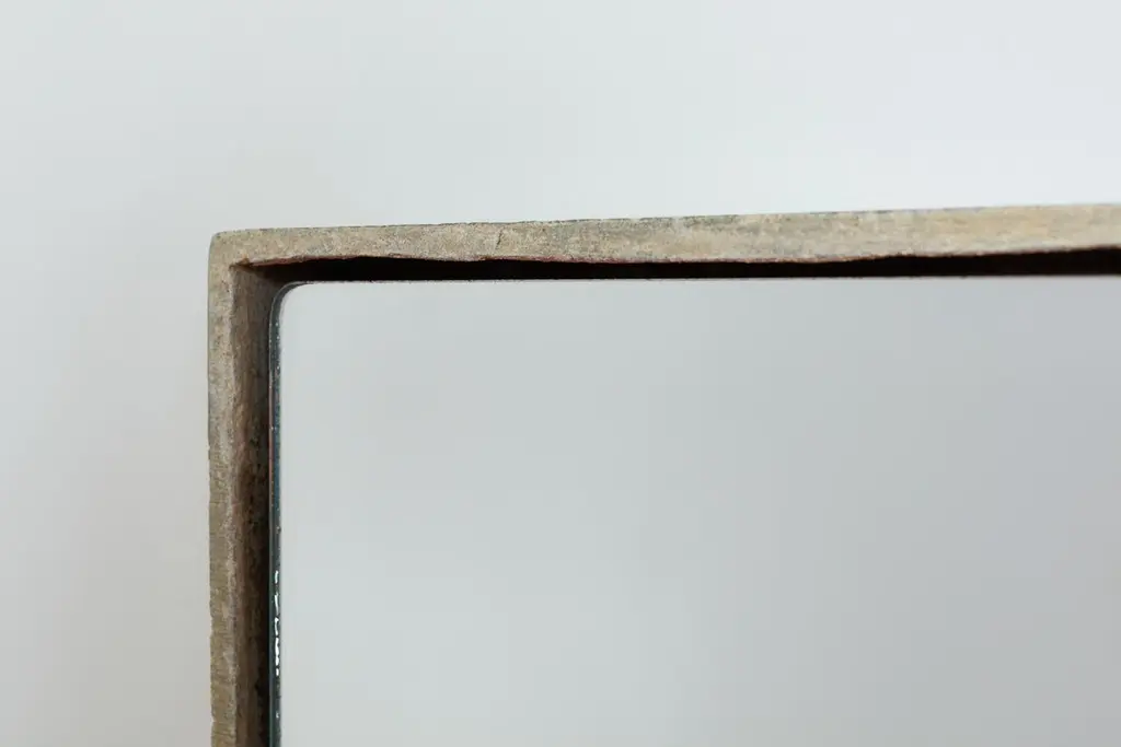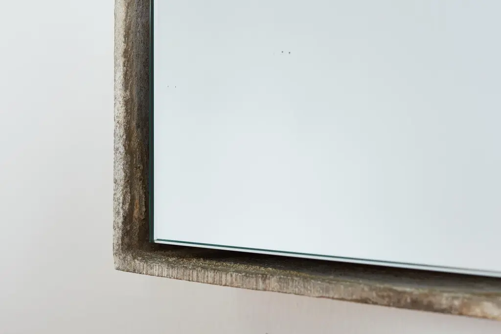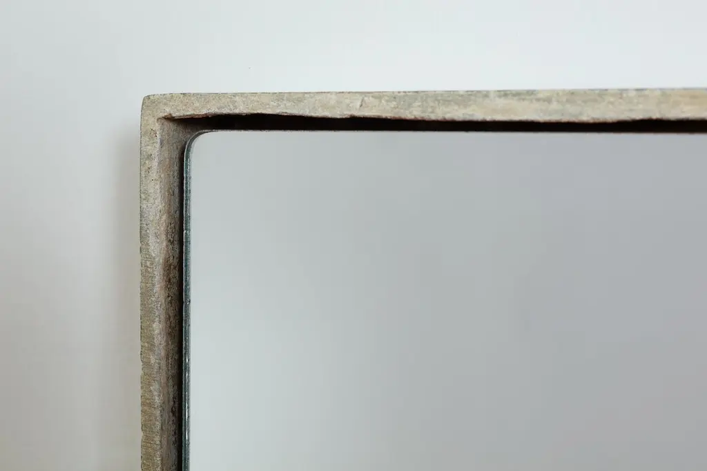 Rectangle Willy Guhl mirror with fantastic patina'd thick signature cement frame and new mirror2 sizes available / multiple quantities.