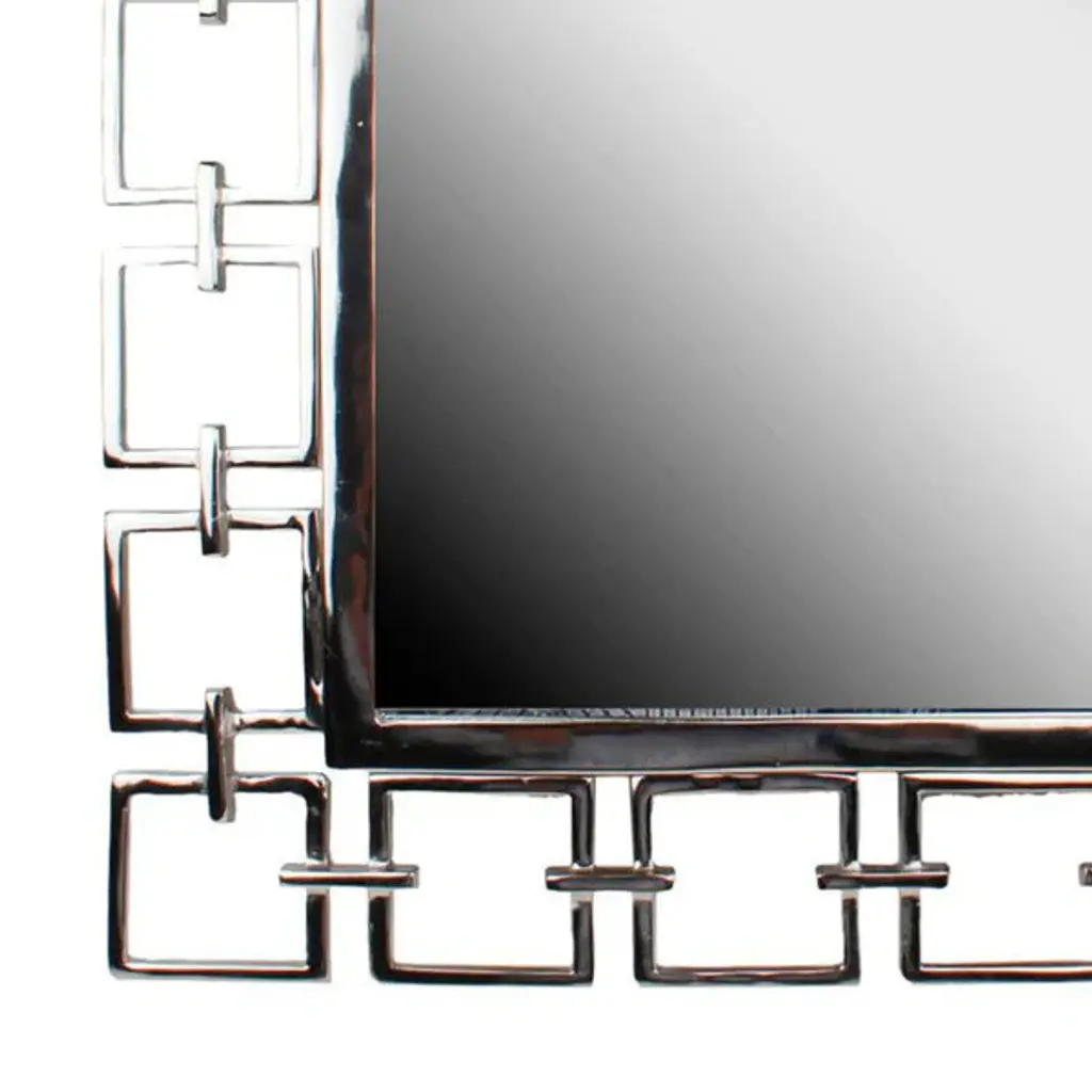 The mirror is made up of a network of interlocking mirrored squares creating a elegantly ornate open-work frame. It features Geometric form mirrored panels, It is a perfect accent piece for an entryway, bathroom, bedroom or any room in your home. 4 Hooks are affixed to the back of the mirror so it is ready to hang right out of the box in a square or diamond orientation! Each mirrored panel on this piece has a small bevel adding to its beauty and style.