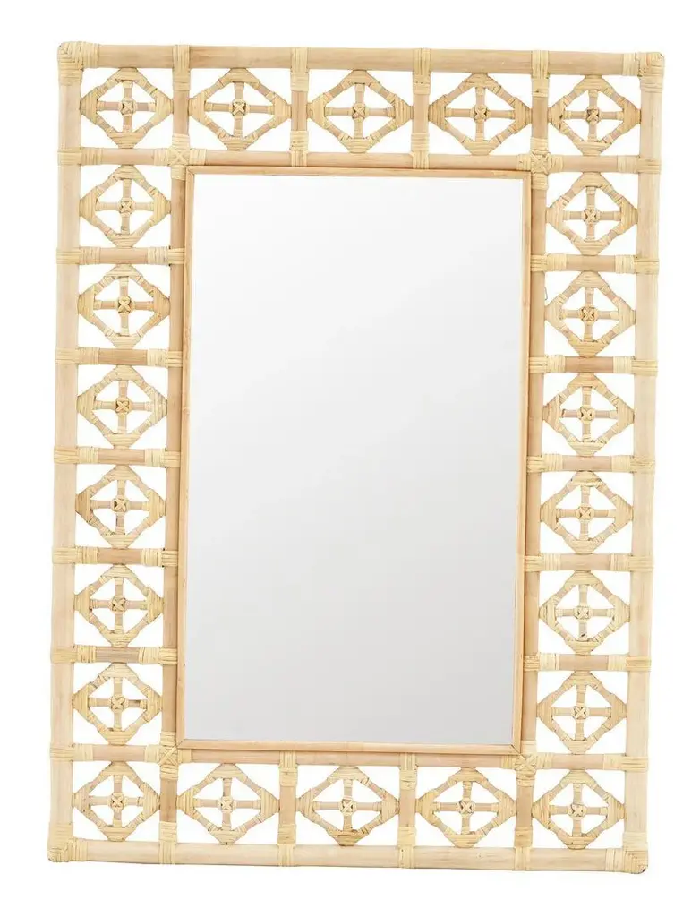 Our pieces are handmade with care, however, we cannot take custom requests. Rectangular Diamond Pattern Mirror. Color - Natural.