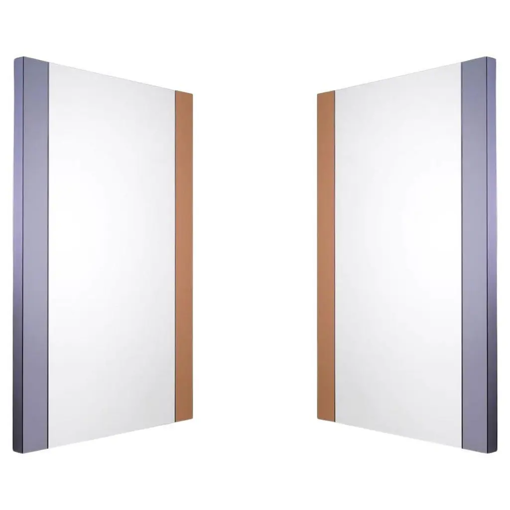 The small Cevio Mirror is a striking addition to modern interiors. Instead of a frame, it has two vertical bands, one of smoked mirror glass and one of amber mirror glass, adding small touches of luxurious style to its otherwise understated look.