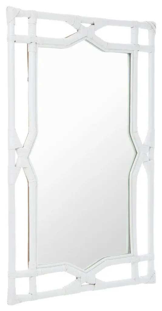 Rectangular Rattan Decorative Chippendale Wall Mirror, White