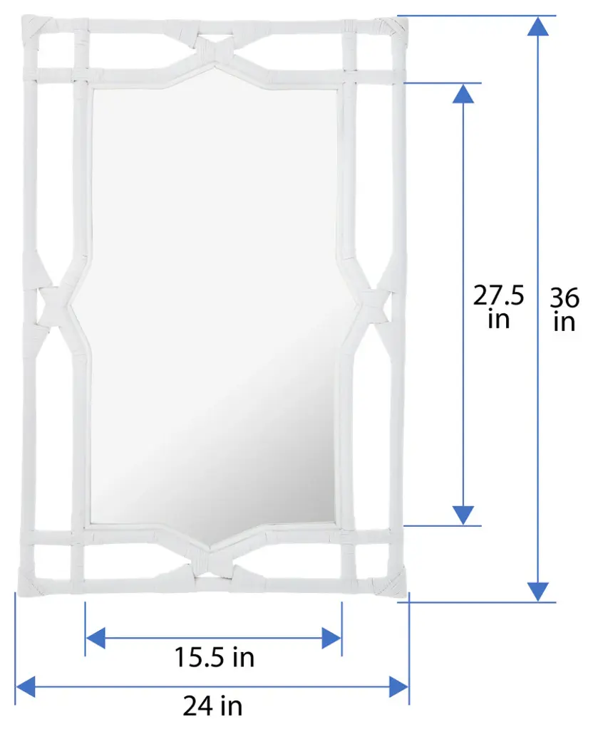You''ve found the piece that will complete your room. Our Rattan Chippendale Mirror, an elegant and handcrafted decorative mirror is designed to add a touch of style and sophistication to your home. This rectangular rattan mirror features a stunning Chippendale design, making it a perfect centerpiece for your boho farmhouse wall decor or as a statement piece in any room.Size: 24 inches wide x 36 inches high. Mirrored glass 15.5 inches wide x 27.5 inches high.Quality Craftsmanship: Handcrafted from naturally grown rattan, this decorative mirror offers an eco-friendly and durable option for your home decor needs.Timeless Design: The Chippendale pattern showcases a classic and intricate design that never goes out of style.Easy Installation: Equipped with a hanging wire on the back, this lightweight rattan mirror is easy to hang (hanging hardware not included).Minor variations in size and finish including color are to be expected and enhance the unique character of this piece.