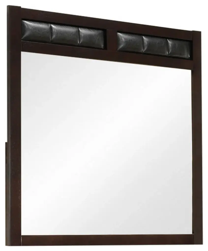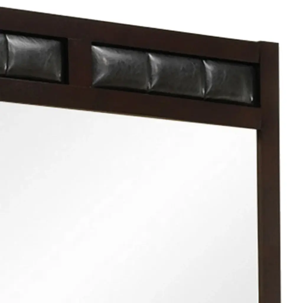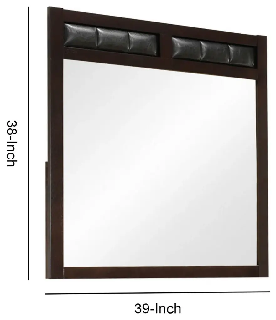 Rectangular Wooden Frame Mirror With Leatherette Panels, Brown