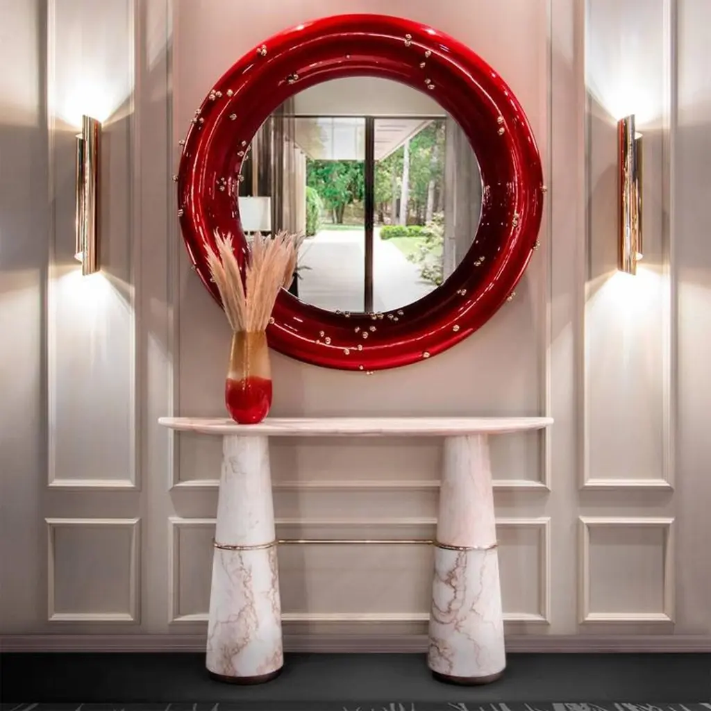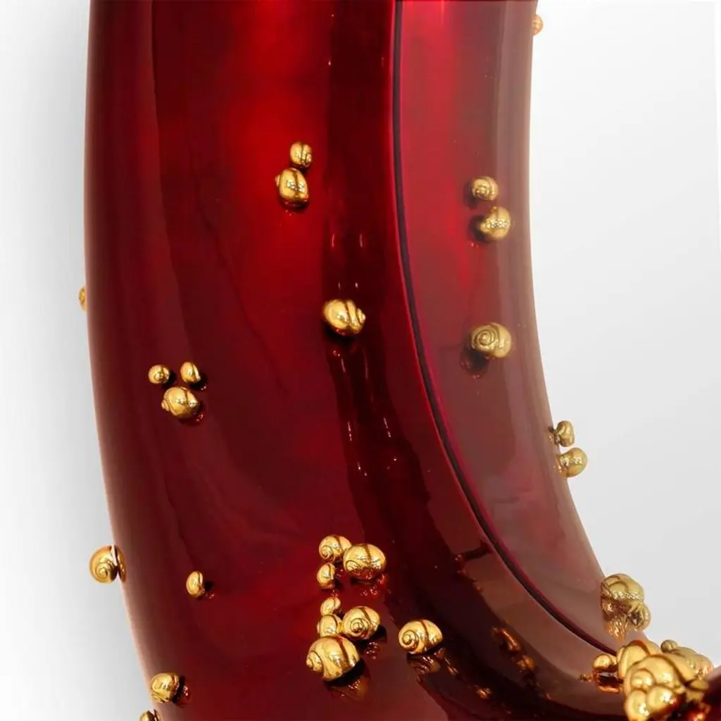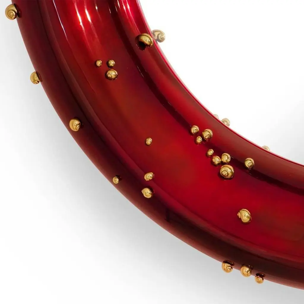 Red Mirror With Black And Red Glossy Varnished And Golded Snails