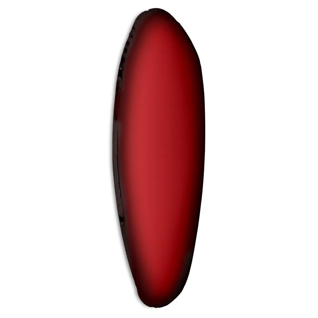 Red rubin Tafla O1 wall mirror by ZietaDimensions: D 6 x W 100 x H 225 cm Material: Stainless steel.Finish: Red Rubin.Available finishes: Stainless steel, white matt, sapphire/emerald, sapphire, emerald, deep space blue, dark matter, or red Rubin. Also available in other sizes.TAFLA O mirror is a bionic sculptural object made by Zieta Studio using FiDU technology. The irregular shape of the mirror is an effect of inflating two-dimensional metal sheets with pressurized air – this way some slight distortions appear on the edges giving each object a unique character.The TAFLA O steel mirrors from the Transitions Collection come in two colors: Rubin Red and Dark Matter. These well-defined strong hues were created with extravagant interiors and their users in mind. Such mirrors covered with semi-transparent lacquer will be a stunning addition to stylish private living rooms, hotel lobbies, and restaurants.TAFLA O comes in seven different sizes – it can be arranged in an artistic personalized composition or exposed on a wall as a single sculpture-like mirror.About Zieta: Zietas main goal is to deliver uniqueness and customization in design and construction while keeping the production, transport, and warehousing innovatively efficient.This is how they imagine the future world: Light, durable structures of customized applications produced on demand out of one-of-a-kind parts, yet efficiently.They use a computer-controlled production process. Customized pattern, customized form, customized function, one-of-a-kind product, and outstanding precision are what they deliver.You will find all of this philosophy reflected in the products. They research, they discover new possibilities, they play with forms and they deliver a beautiful, innovative, surprising outcome to people who love the design and who care about design development.They believe their work is a valuable contribution to the world of design not only by the unique beauty of the forms but most of all by opening ultra-innovative opportunities of forming and new paths for the world of the future.