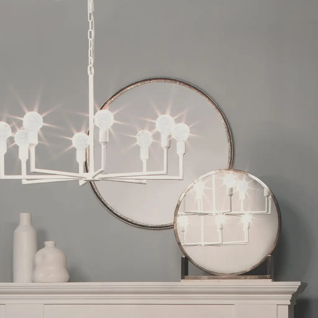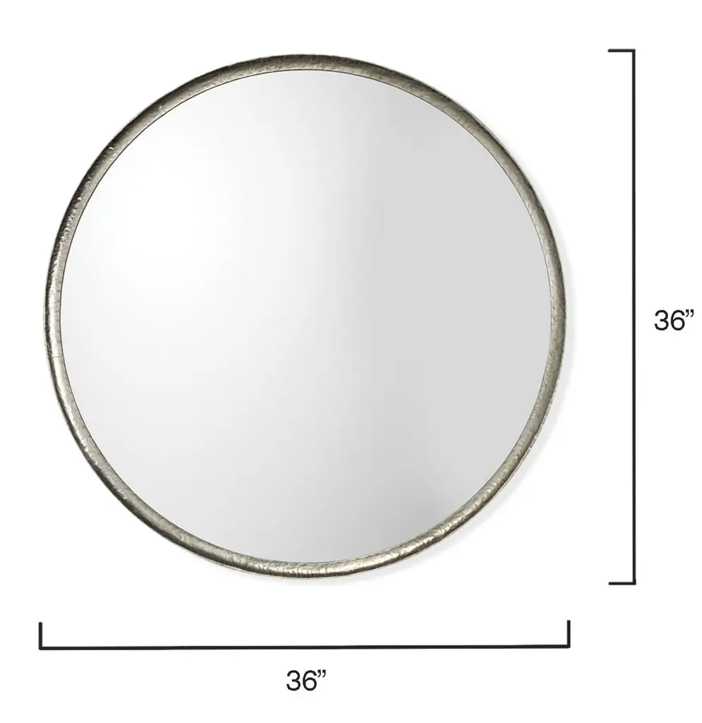 The artfully antiqued finish of the silver frame gives this round mirror the allure of a much-loved family heirloom.