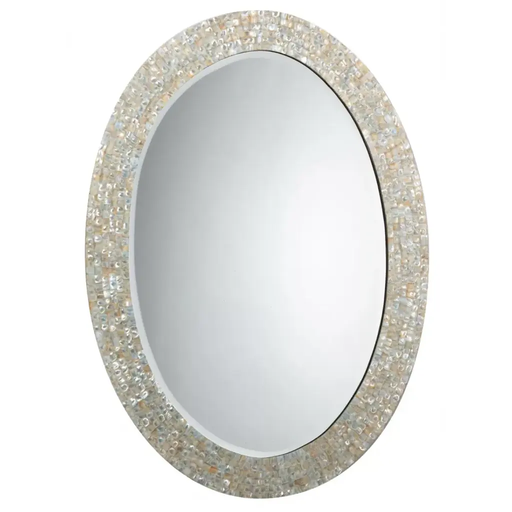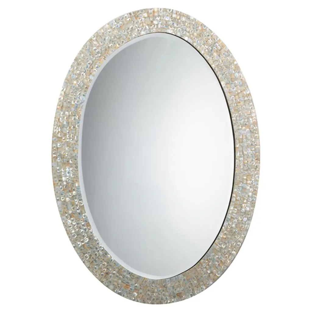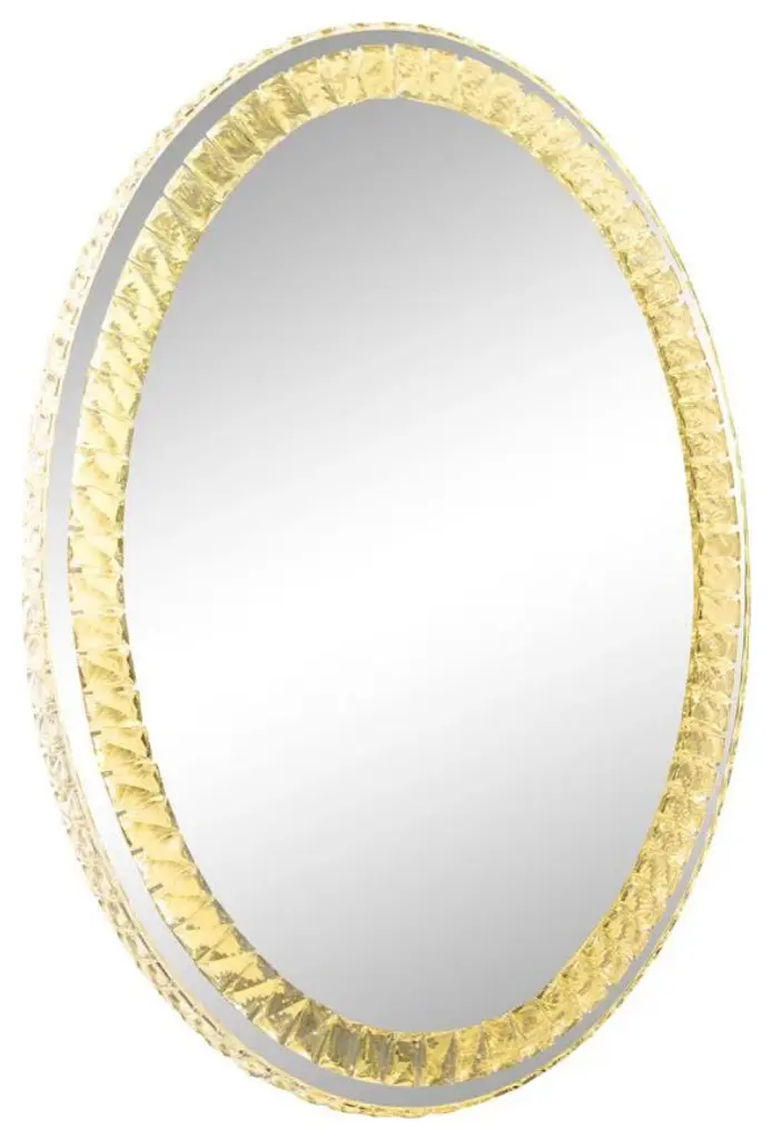 The Reflections Collection oval mirror features a crystalframe and LED lighting built in. The LED is controlled by a small ON/OFF switch which is on the mirror (the switch also allows control of the brightness).
