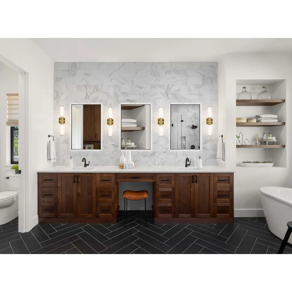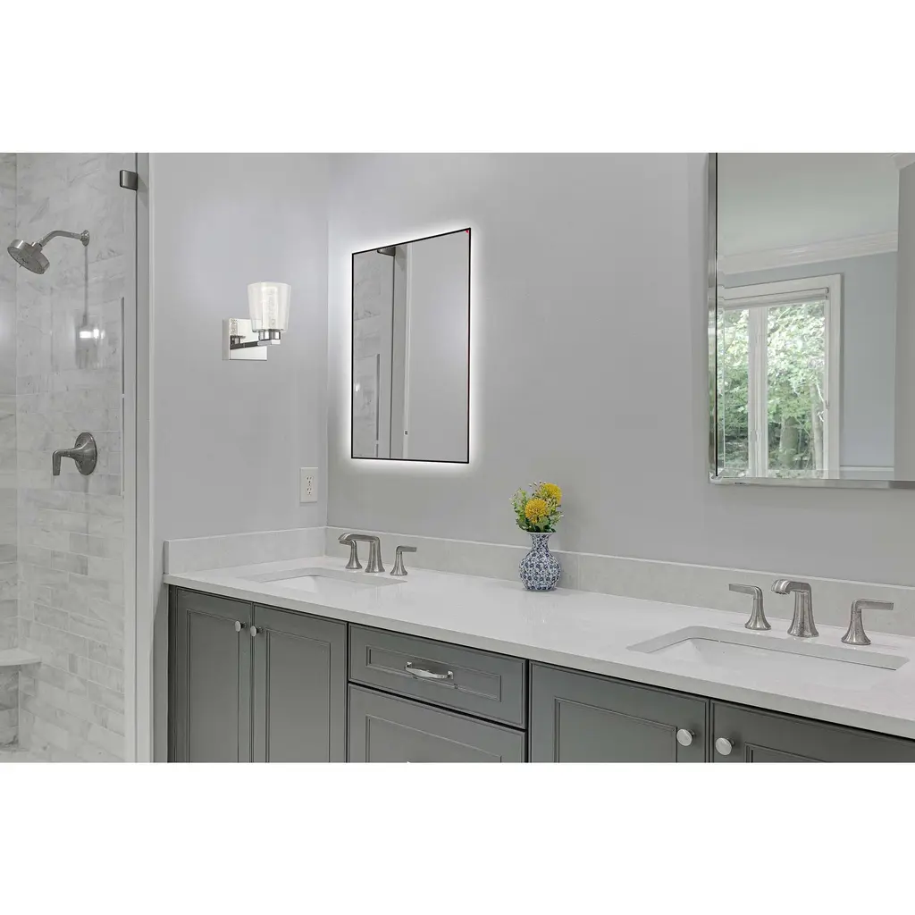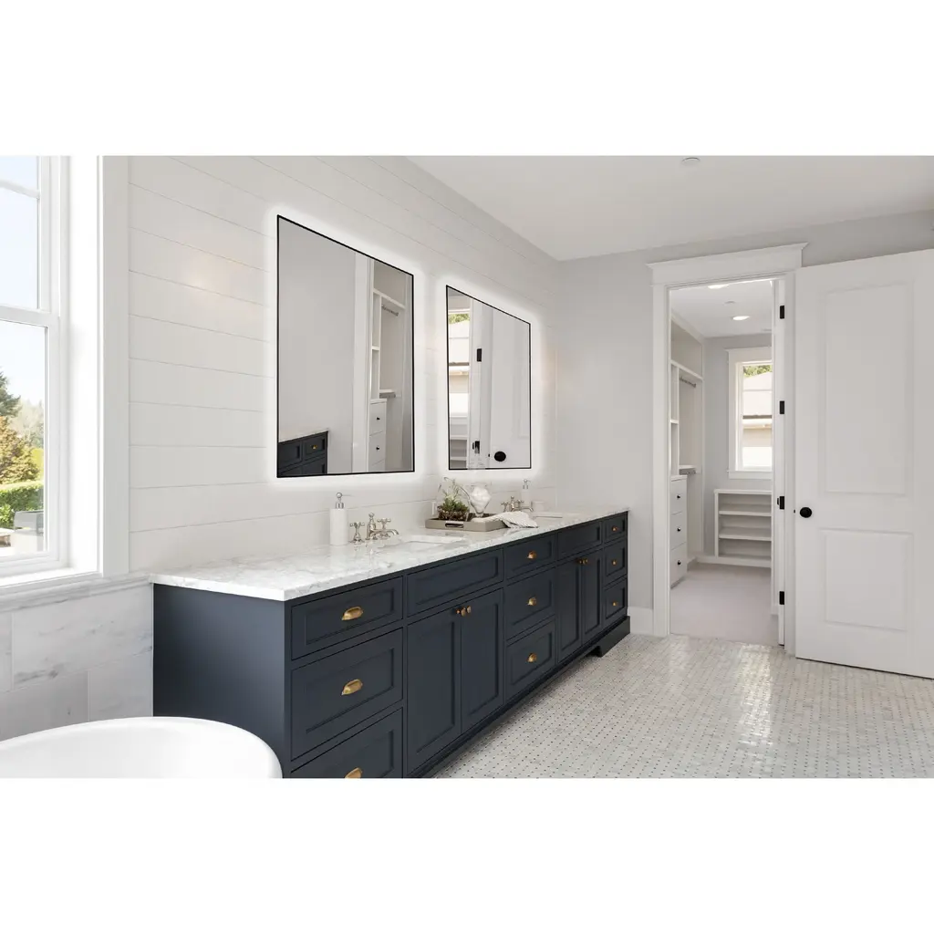 The Reflections collection rectangular LED mirror features a very thin black frame and super thin extension from the wall (under 2). This LED mirror features a white Smart Touch Dimmer Switch that gives the user full lighting control from the touch of one button.