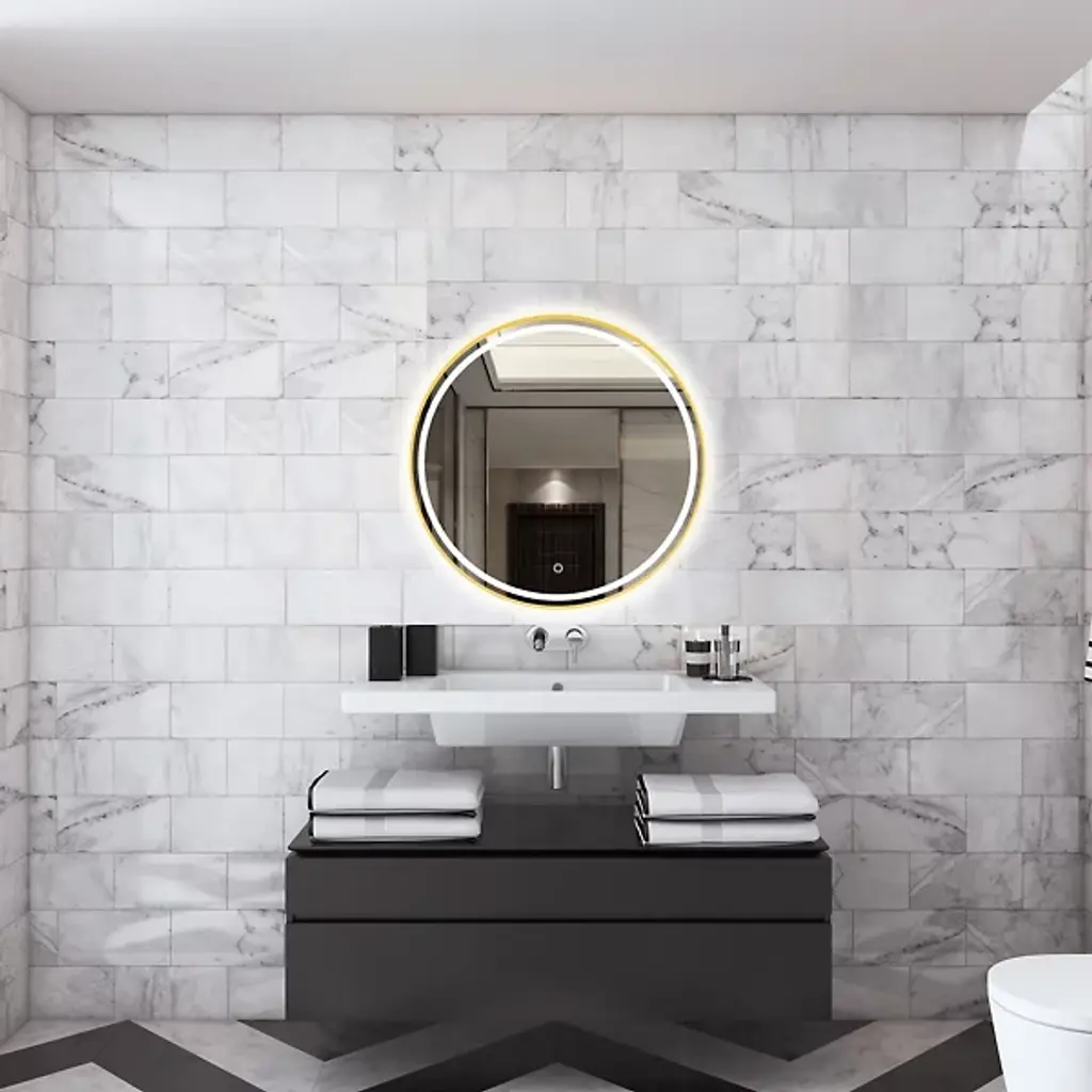 The Reflections AM351 Round LED Mirror from Artcraft showcases a sleek design featuring a circular frost frame that blends modern functionality with elegant aesthetics. Equipped with a "Smart Touch Switch," this mirror allows for easy dimming, on/off control, and the ability to change the color temperature from 3000 to 4000 to 5000 kelvin. This combination of sophisticated design and advanced technology makes the Reflections LED mirror a perfect addition to any contemporary space, enhancing both style and convenience.
