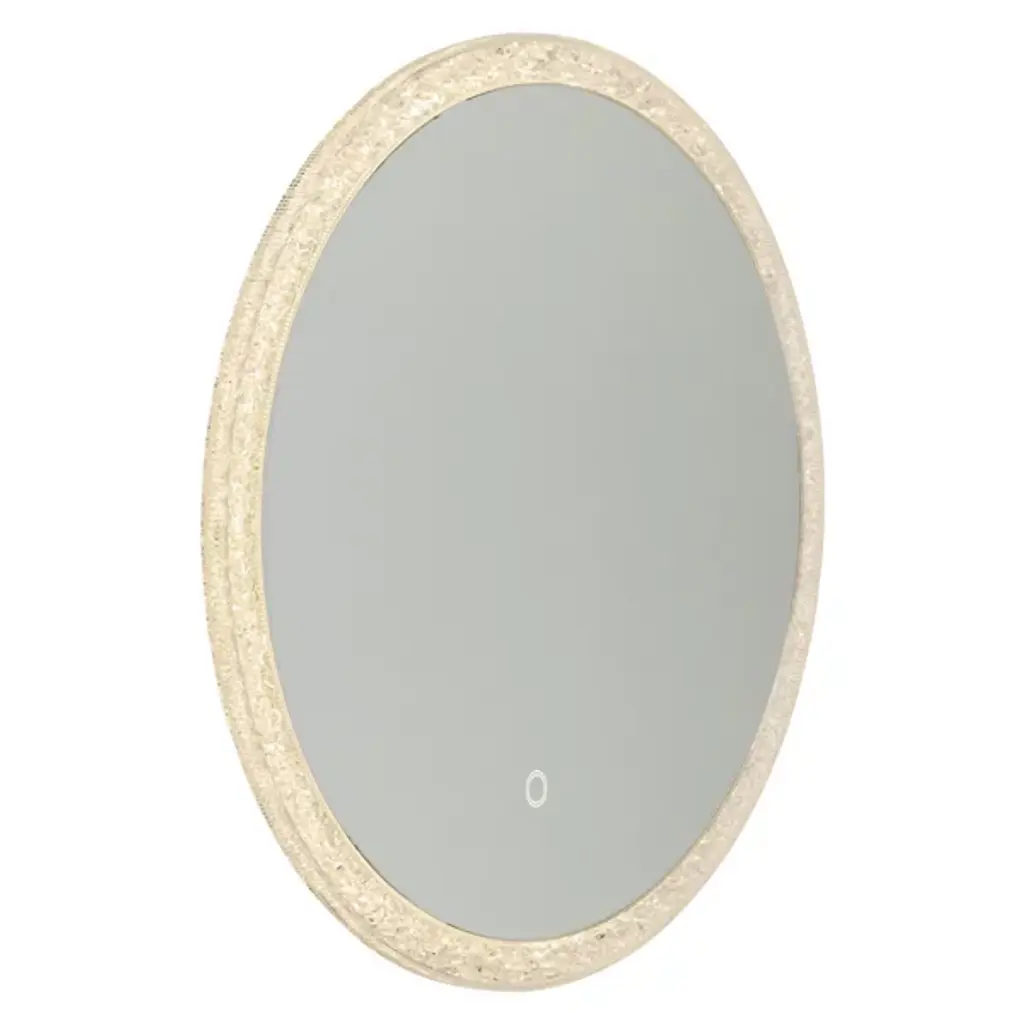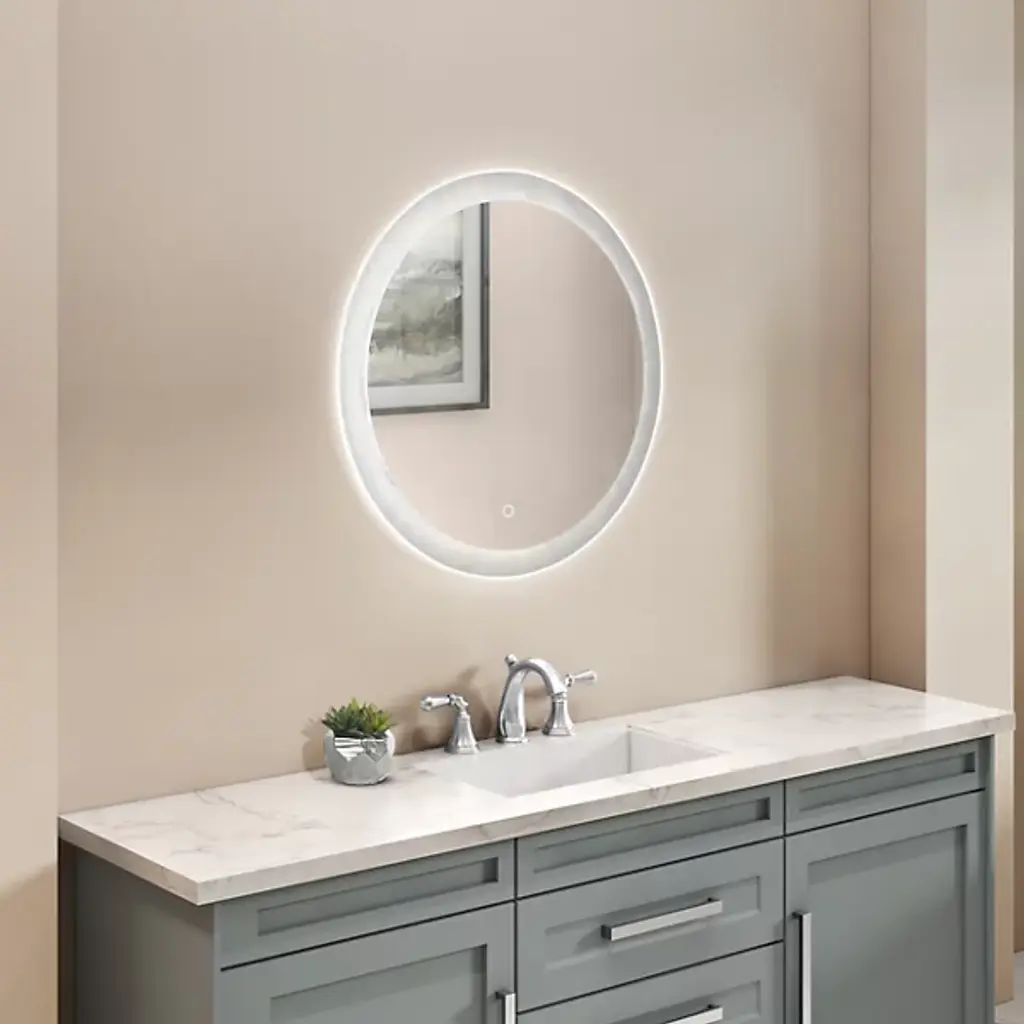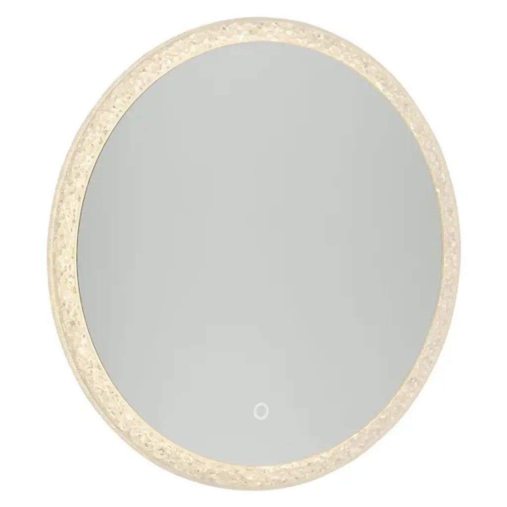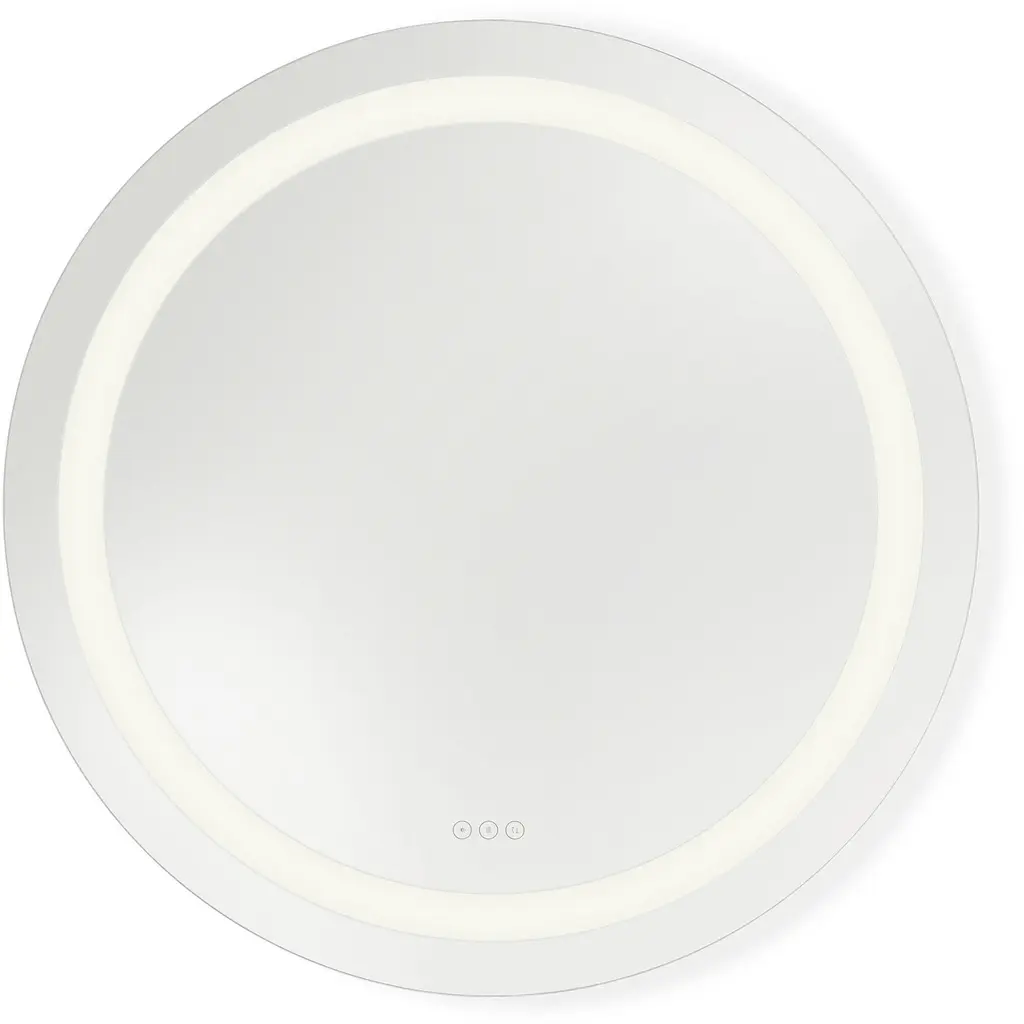 The Reflections Glass Round LED Mirror from Artcraft boasts a sleek design with a circular frost frame, seamlessly blending modern functionality with elegant aesthetics. This advanced mirror is equipped with a "Smart Touch Switch," allowing for effortless dimming, on/off control, and color temperature adjustments from 3000 to 4000 to 5000 kelvin. Combining sophisticated design with cutting-edge technology, the Reflections LED Mirror is an ideal addition to any contemporary space, enhancing both style and convenience.
