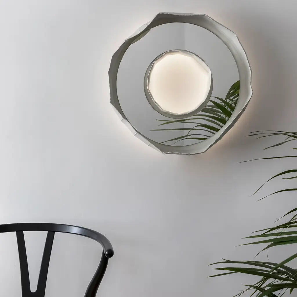 Handmade in Italy by Paola Paronetto & Giovanni Botticelli , this mirror applique merges ceramic with glass. REFLECTIONS, a fusion of distinctive materials developed by their creators, unites an apparently light material such as paper clay with the crisp lines of the mirror. The result is a thoughtful and meticulous balance, warm and delicate. The chromatic harmony is purposeful and unites the two materials seamlessly.Available in 5 colors plus an extensive palette of colors for bespoke requests.
