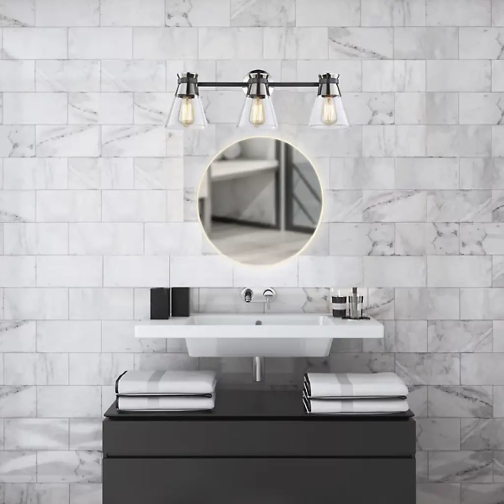 The Reflections Thin Round LED Mirror by Artcraft is a perfect blend of classic charm and modern functionality. It features transitional style that seamlessly adapts to any setting. The mirror has been constructed using high-grade metal and glass to ensure durability and longevity. Ideal for a sophisticated bathroom setting, the Reflections LED Mirror adds a touch of elegance while offering practicality. Its integrated LED light, along with the provided smart touch dimmer switch, allows you to adjust lighting according to your mood or necessity, enhancing your daily routine.