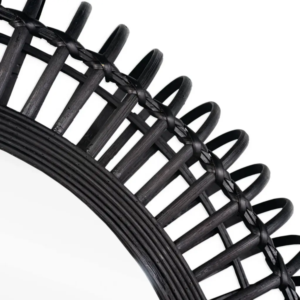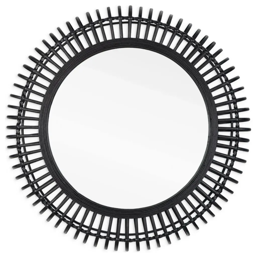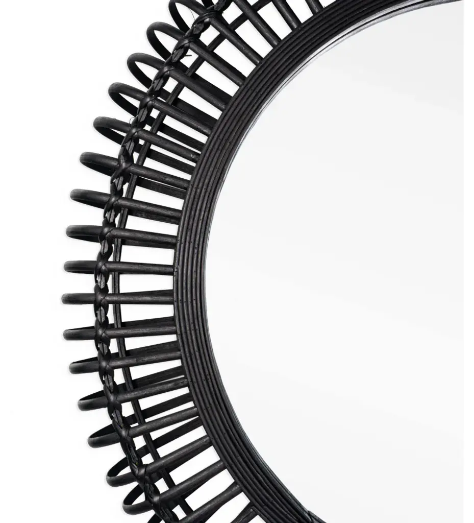 Update your space with this modern take on a traditional bamboo mirror. The woven round bamboo frame is finished in black and complements any decor from contemporary to boho and everything in between. Hang it in the living room, hallway, entryways or above a vanity to make your space appear expanded and brighterProduct Size: 31" x 4" x 31"Mirror Dimensions: 20" x 20"Product Material: Bamboo, GlassProduct Color: BlackReady to hang using pre-attached hooksProduct Style: Modern, Contemporary, Boho