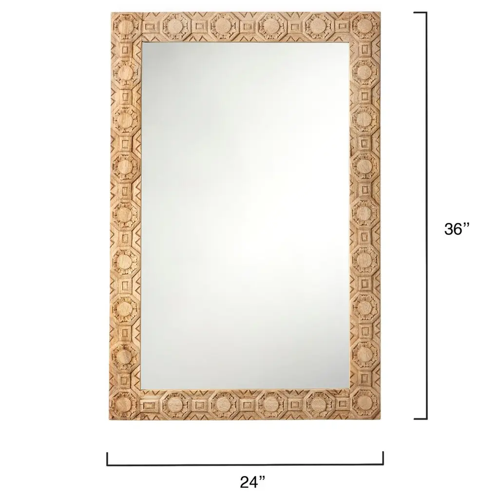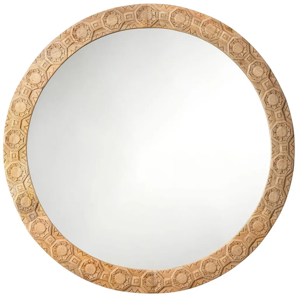 Inspired by world travels, this mirror showcases intricate hand carved flowers and unique geometric patterns. Hang several together for an eye-catching display, or place just one within a gallery wall for a reflective counterpoint.