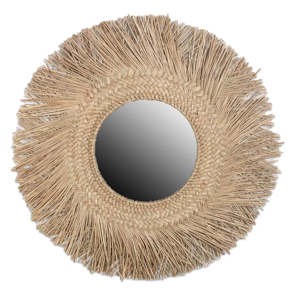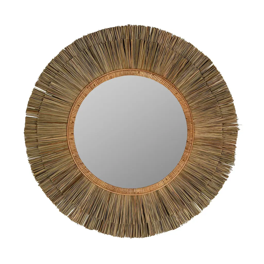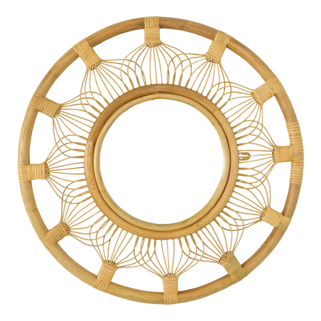 The Remi mirror features a natural iron and cane frame, an organic accent for your home. A burst of fine craftsmanship, this small wall mirror is a great way to add depth to your living space.