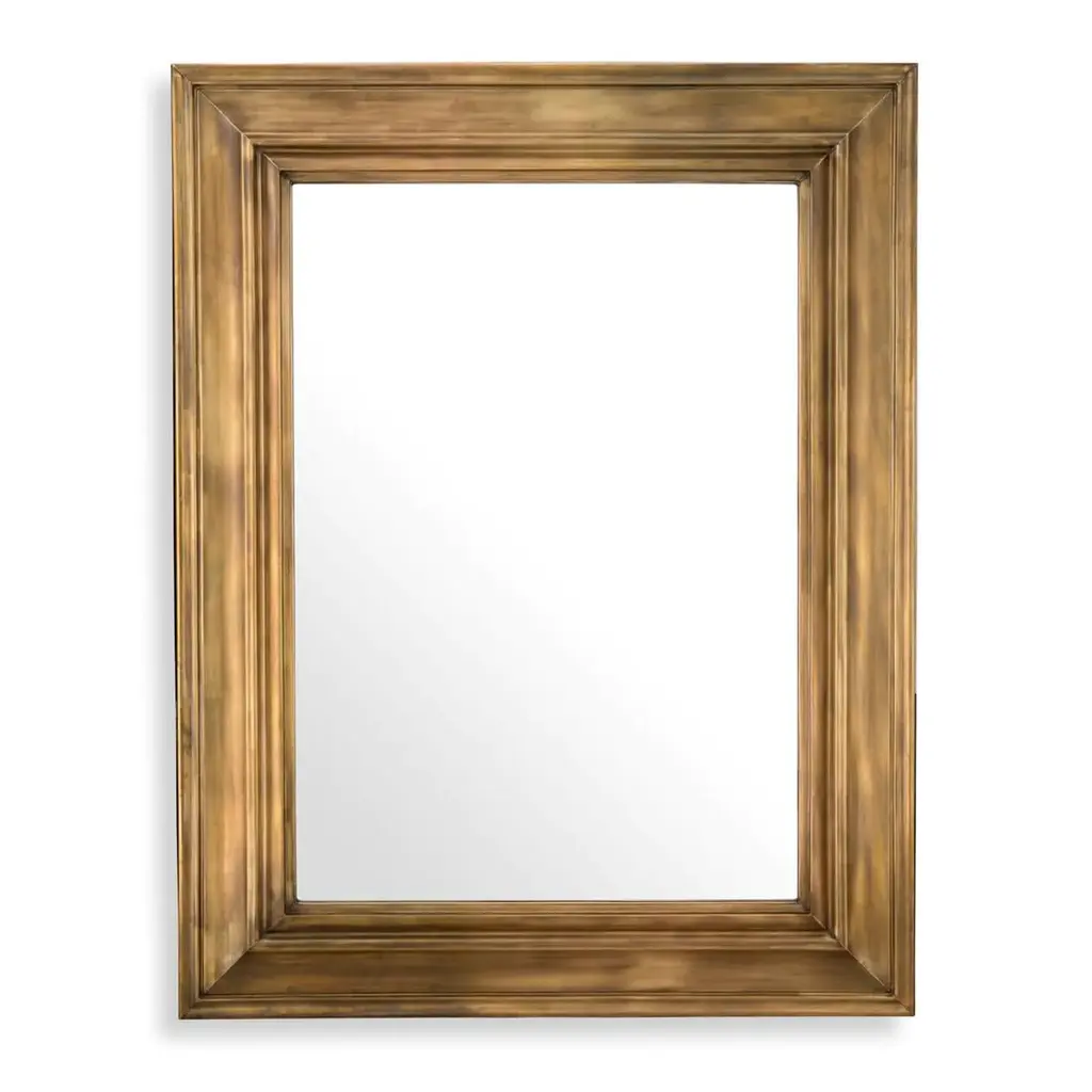 Mirror Remona Large with stainless steel and ironframe in vintage brass finish, with clear mirror glass.