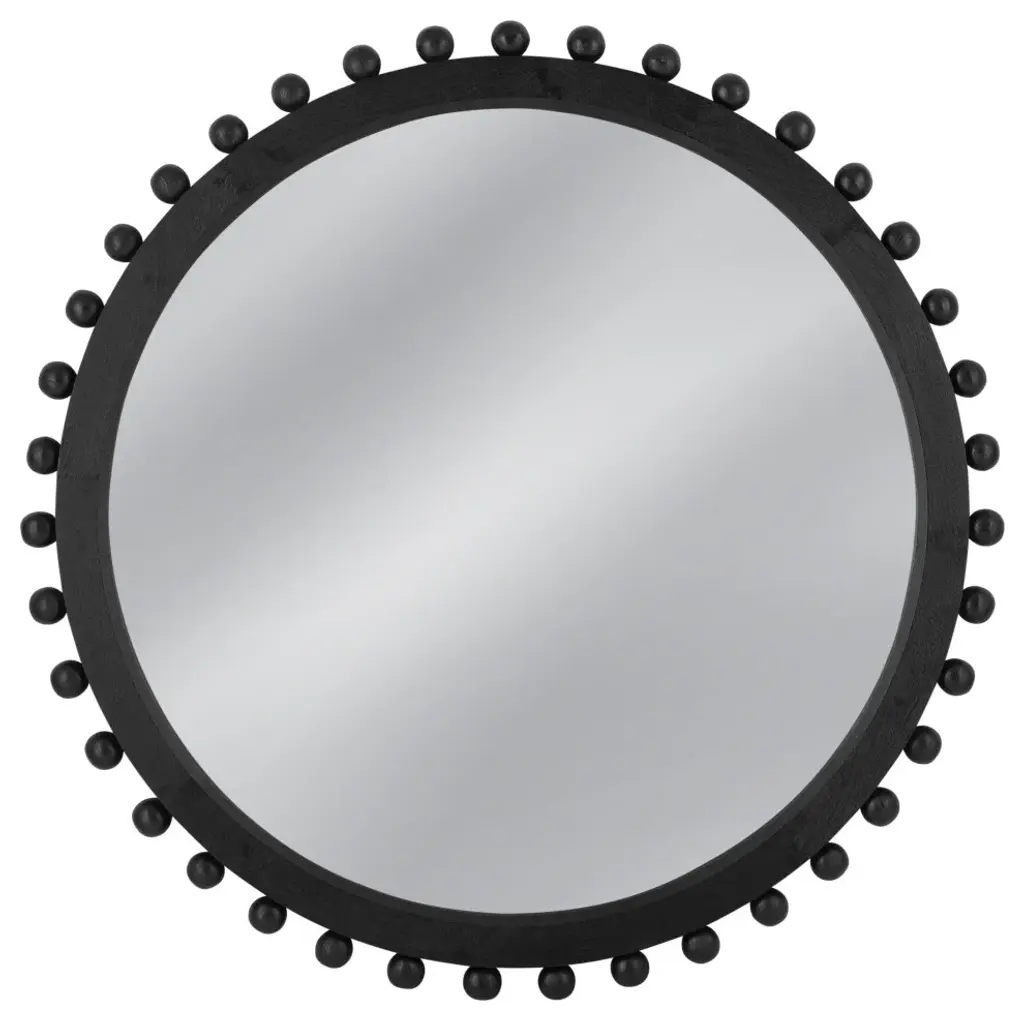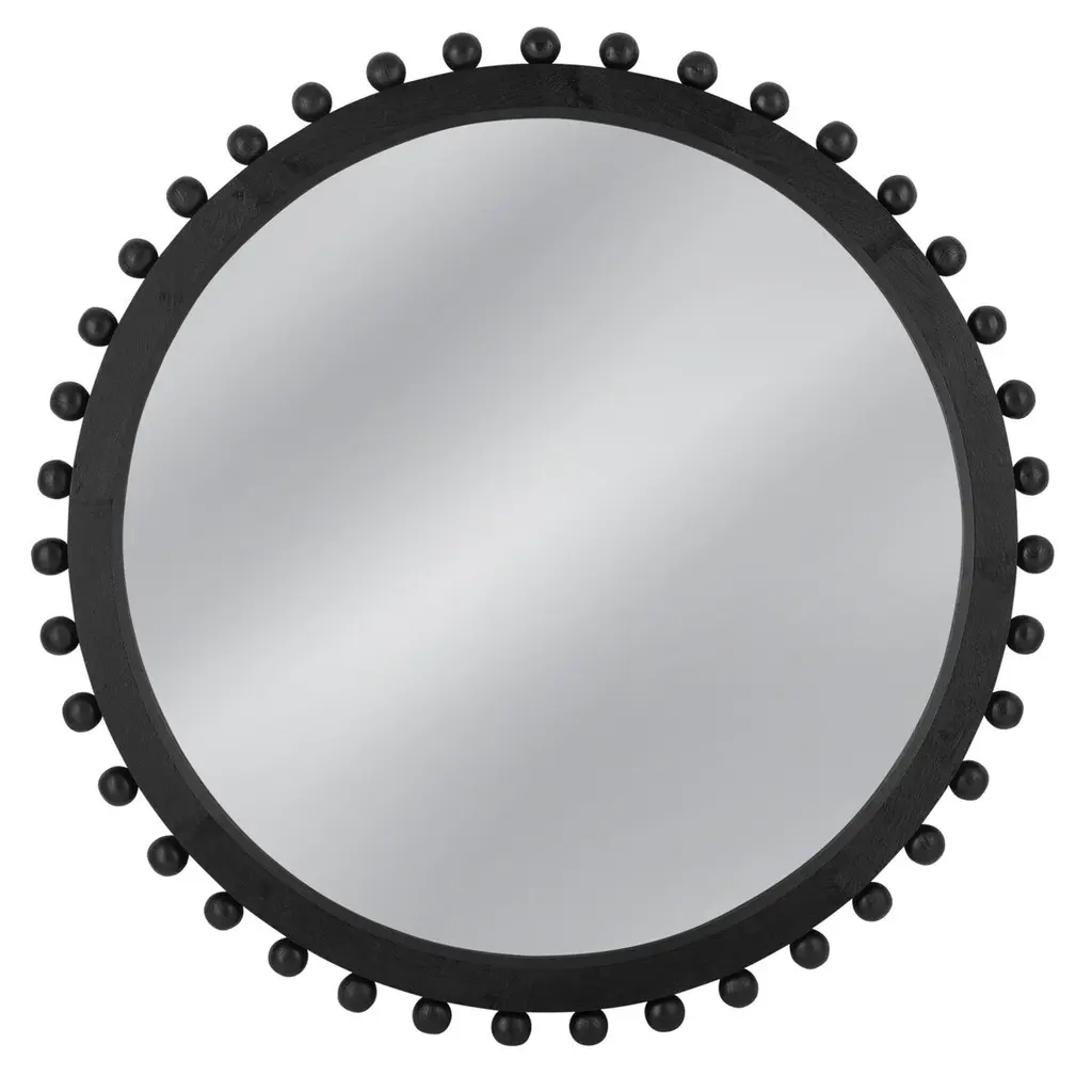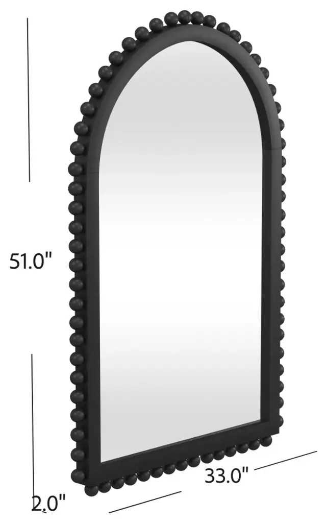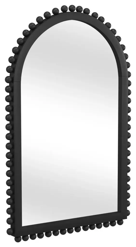 The Renn Wall Mirror features a rectangular shape with an arched top and is studded with whimsical wooden spheres. The mirror frame features a black finish.Features:This wall mirror features boho stylingFeatures a black frame constructed with woodNo assemblyFor over a century, Bassett Mirror has been synonymous with style and quality, transforming homes with its sophisticated and timeless designs. With a wide-ranging collection of furniture, lighting, mirrors, and art, Bassett Mirror seamlessly blends modern style with classic appeal. From rustic modern to luxe glam, each piece is thoughtfully crafted to inspire and elevate any space. Committed to exceptional value and customer care, Bassett Mirror makes it easy for homeowners to create beautiful, personalized interiors with confidence.