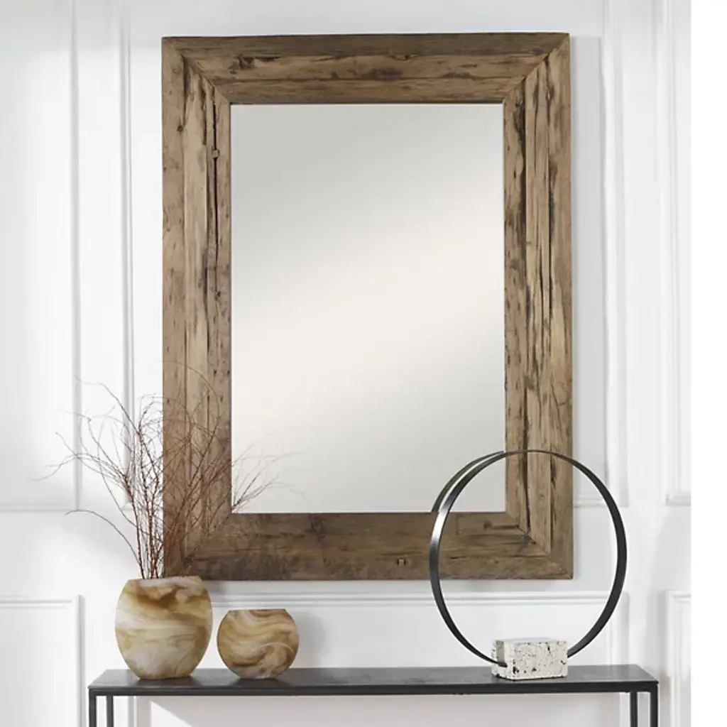 The Rennick Wall Mirror from Uttermost celebrates the rustic character of reclaimed pine wood. Natural weathering patterns, knots, and marks in the frame tell the story of the wood's previous life. As with all genuinely salvaged materials, each piece develops its personality through slight variations and the natural movement that occurs with temperature and humidity changes. These organic imperfections and the ongoing evolution of the wood add to the mirror's authenticity. The versatile design allows for both horizontal and vertical mounting options.