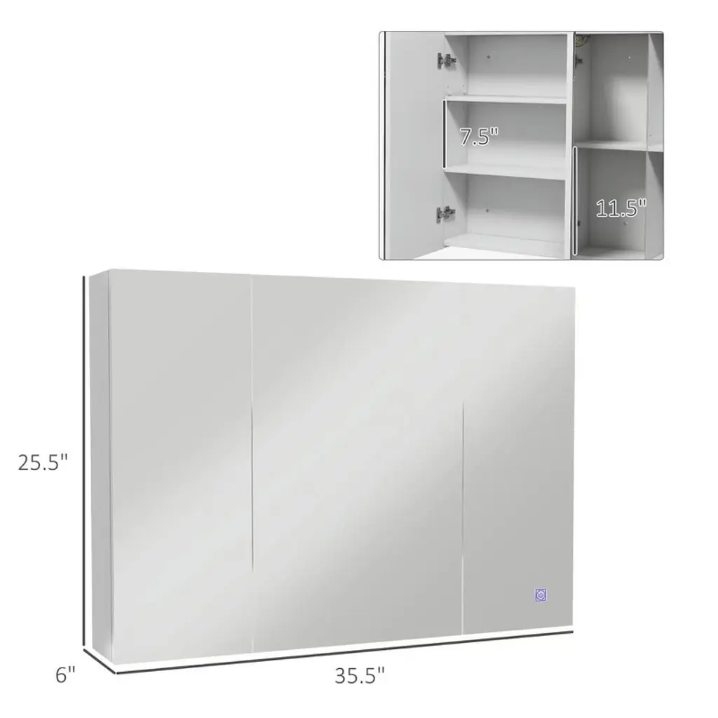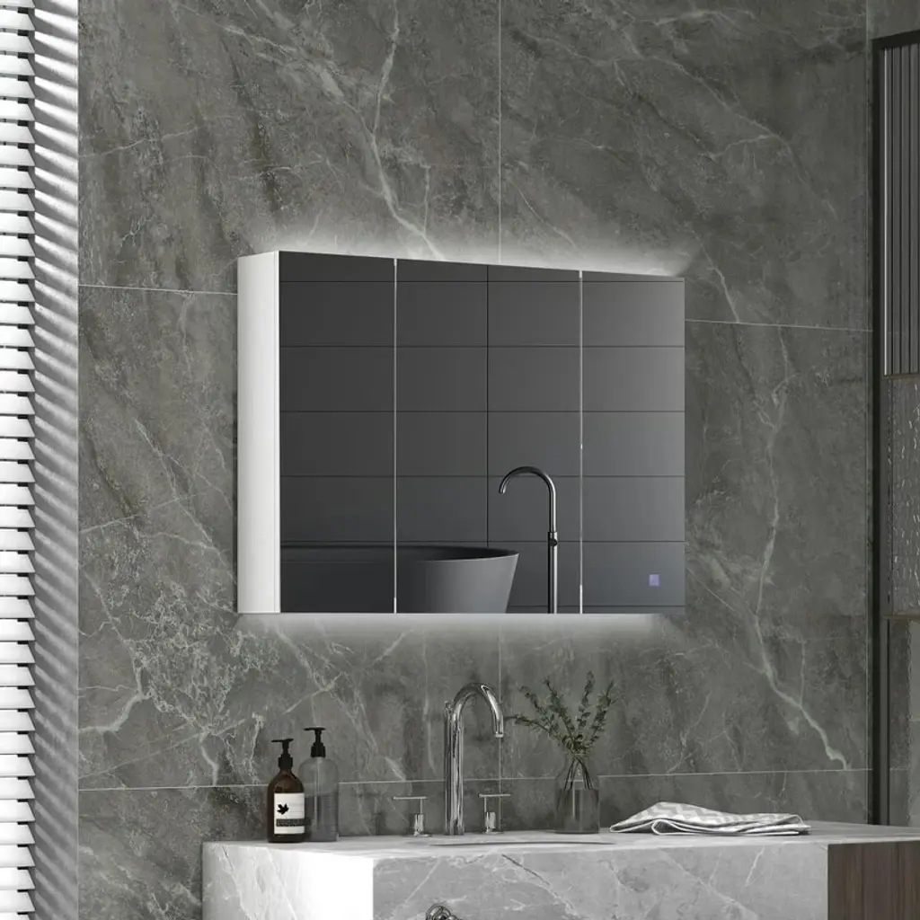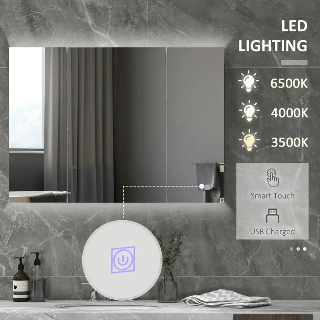 Resenkos Bathroom Mirror Cabinet With Light, Bathroom Storage Cupboard With Usb Charge, Adjustable Shelf, White