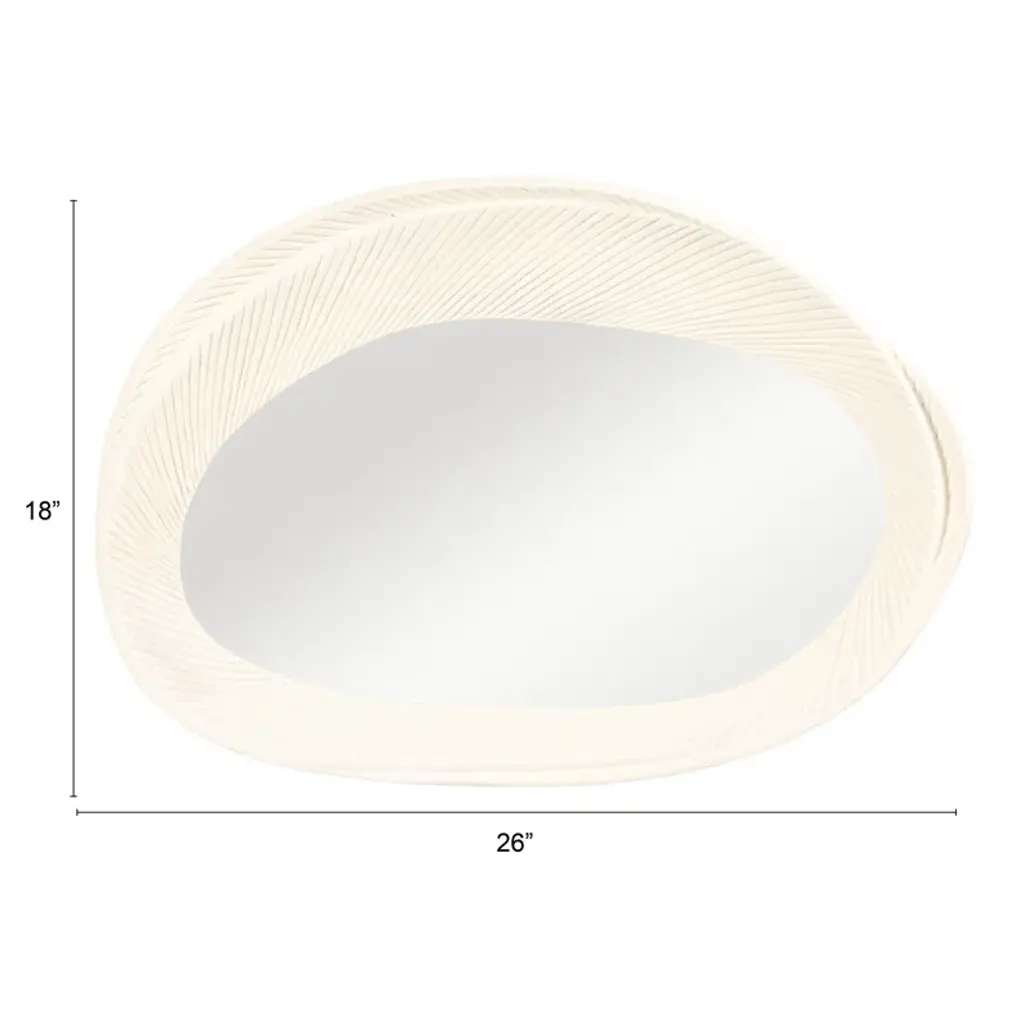 This Resin Framed Wall Mirror in antique white is a sophisticated addition to any home. The elegant irregular shape and antique white resin frame create a timeless look that complements farmhouse, French country, transitional, and contemporary decor styles. This mirror can be hung vertically or horizontally, offering versatile placement options for any space. Made of durable polyresin with a clear glass mirror, it measures 18 inches in length, 2 inches in width, and 26 inches in height, making it a stylish and functional accent piece for the home. Whether placed in the entryway, living room, bedroom, or bathroom, this mirror will effortlessly elevate the aesthetic of any room.