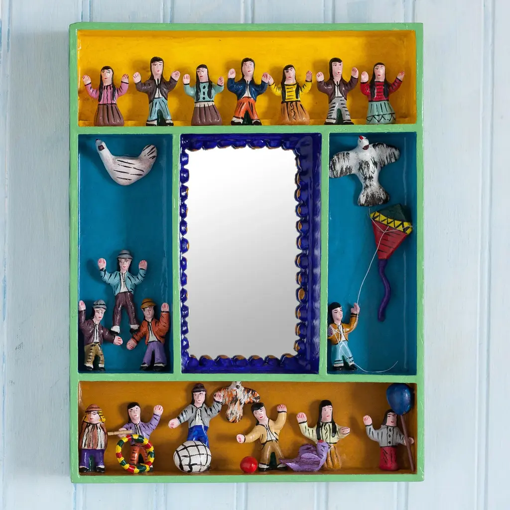 Retablo Folk Art Wall Mirror- Party Of Masks