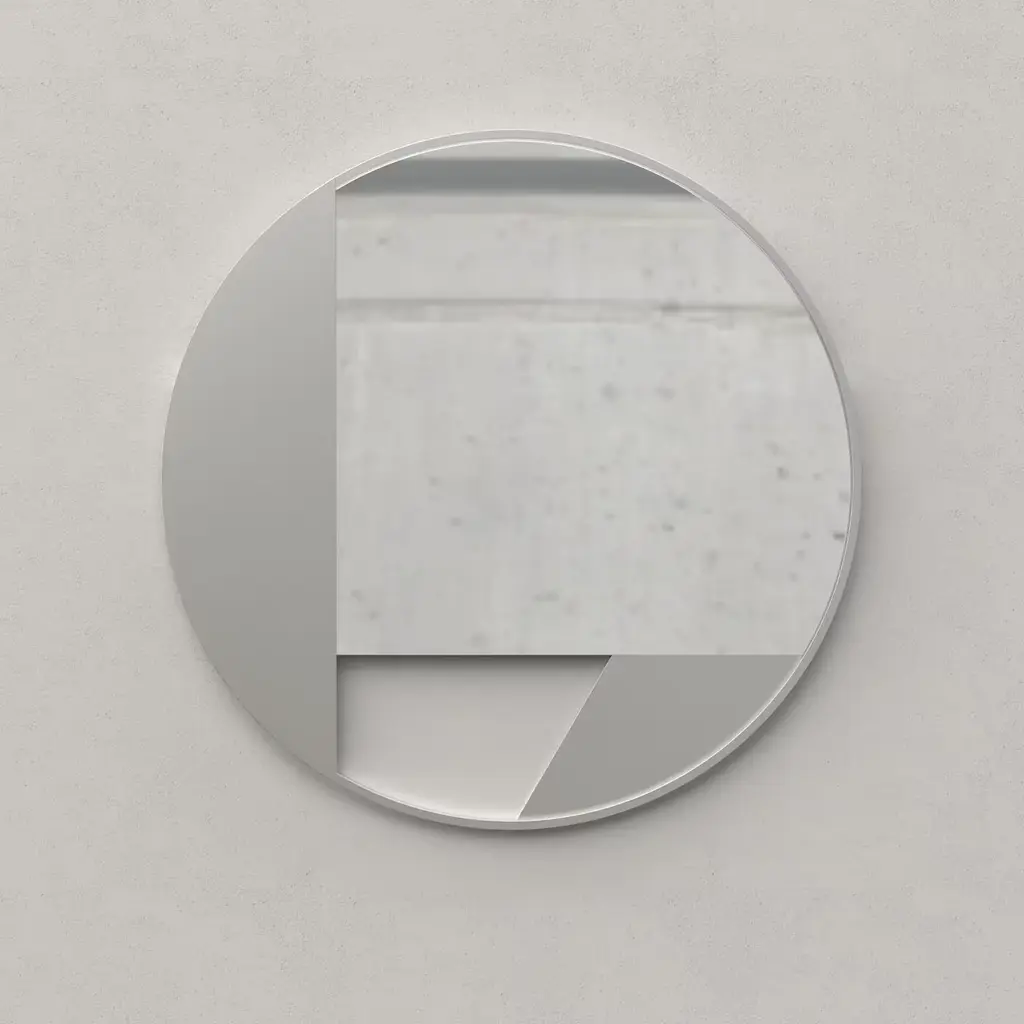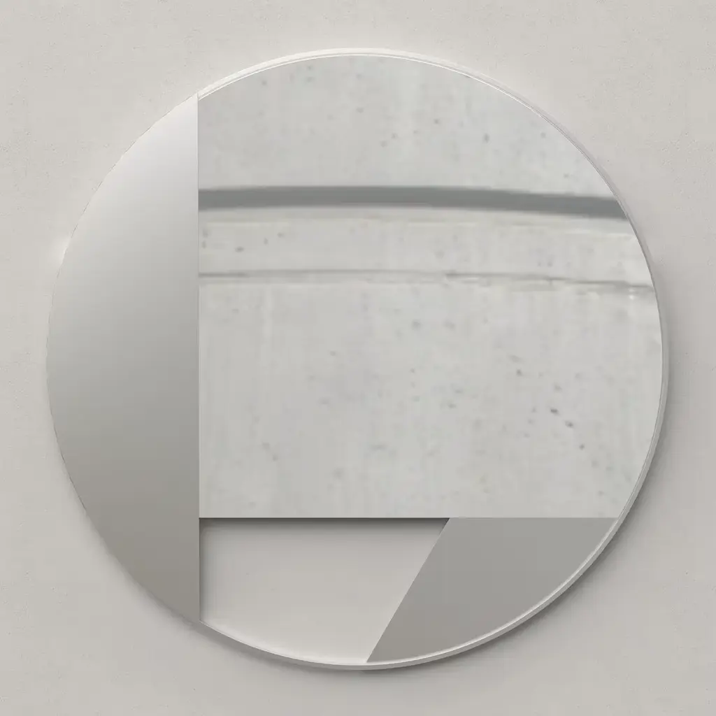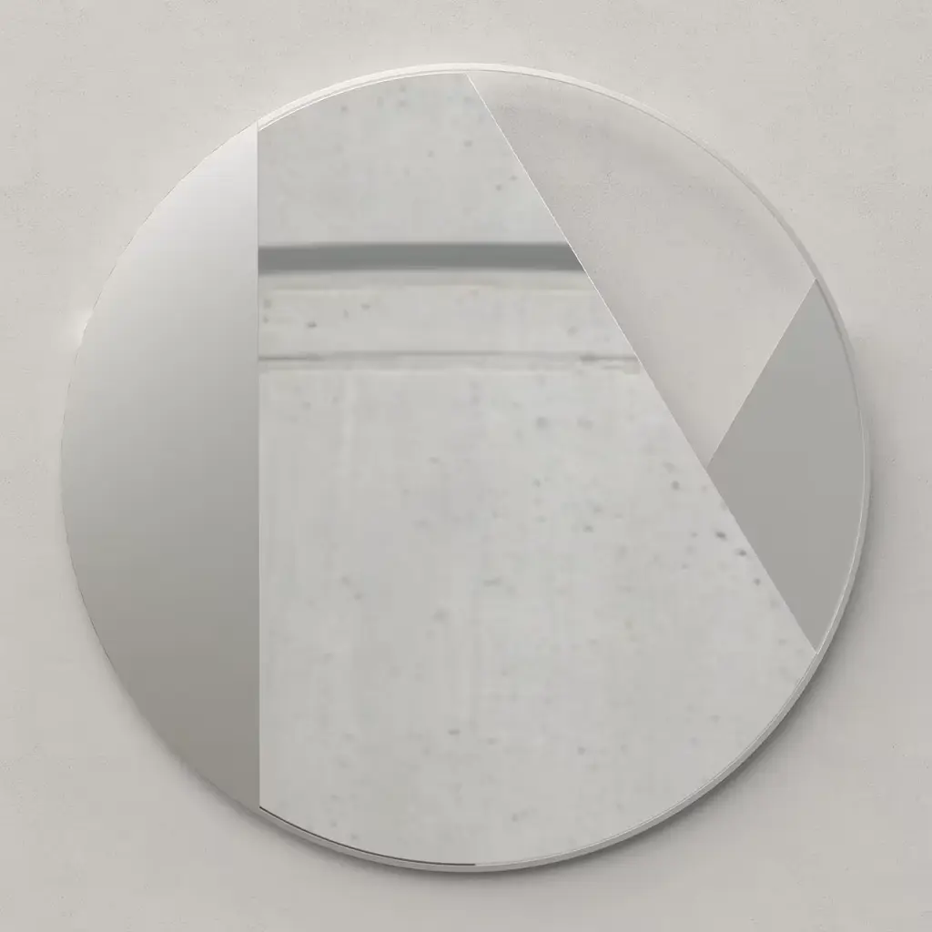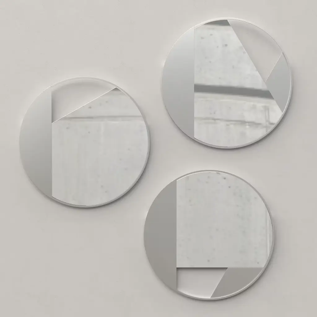 Revolution V2 is a wall mirror, 55 cm in diameter, featuring geometric silver brass applications and a distinctive hollow section, meticulously handcrafted in Italy. Part of the exclusive Revolution collection, developed by Edizione Limitata's art research team in Milan, it showcases a perfect harmony between the geometries of frames, mirrors, and walls. This limited edition of 1000 pieces is numbered and signed.