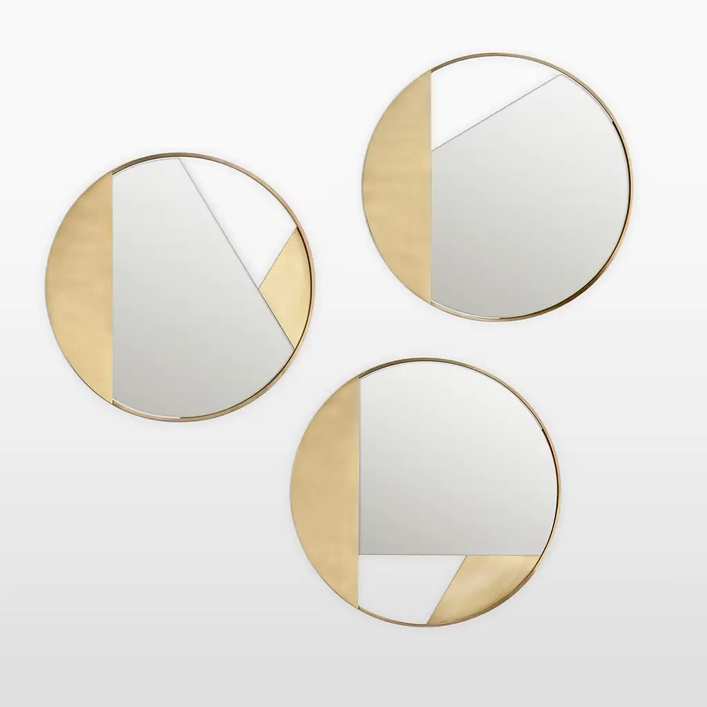 Revolution mirror N. 1 is a wall mirror, featuring geometric gold brass applications and a distinctive hollow section, meticulously handcrafted in Italy. Part of the exclusive Revolution collection, developed by Edizione Limitata's art research team in Milan, it showcases a perfect harmony between the geometries of frames, mirrors, and walls.