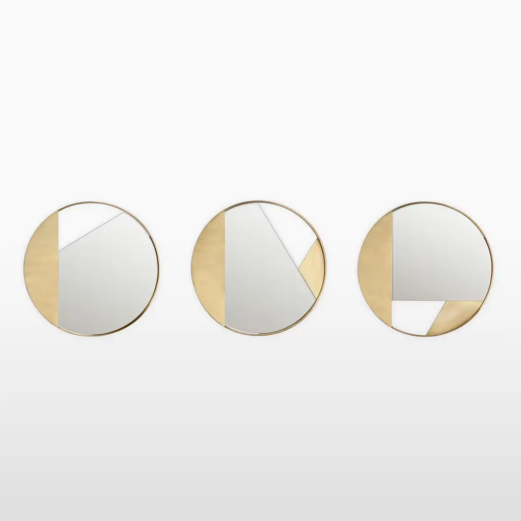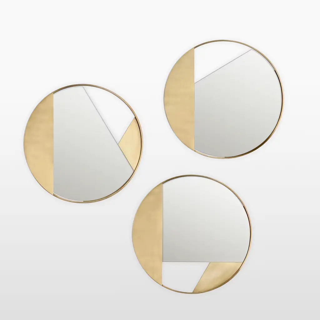 Revolution mirror N. 2 is a wall mirror, featuring geometric gold brass applications and a distinctive hollow section, meticulously handcrafted in Italy. Part of the exclusive Revolution collection, developed by Edizione Limitata's art research team in Milan, it showcases a perfect harmony between the geometries of frames, mirrors, and walls.
