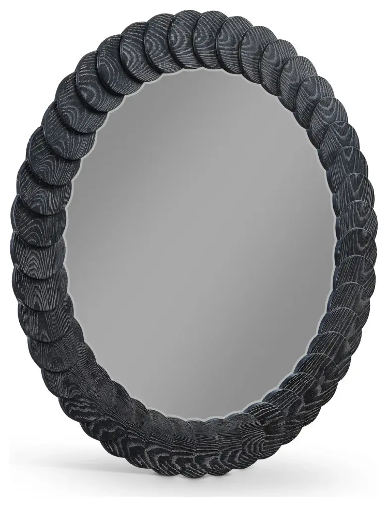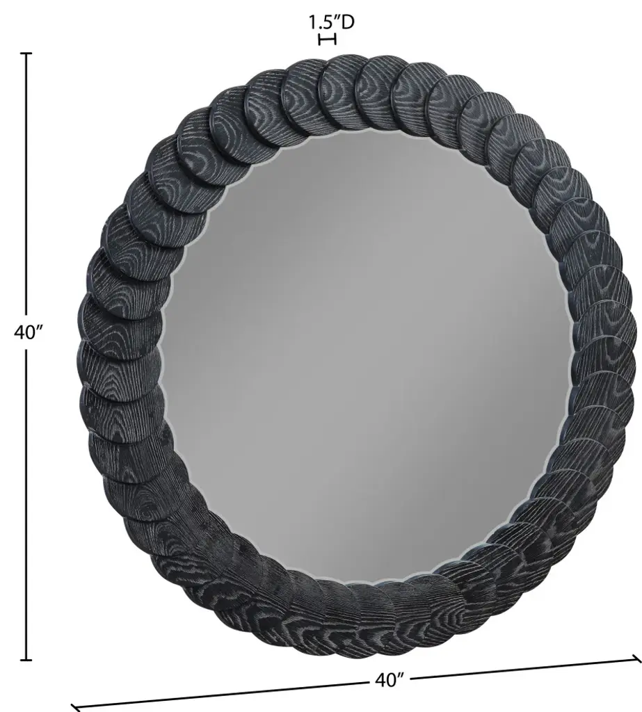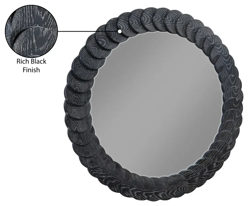 Indulge in the allure of the Black Revolve Mirror by Meridian Furniture. Its captivating design and luxurious Black elevate any space with effortless elegance. Crafted with precision and durability in mind, this stunning piece becomes the focal point of gatherings, fostering moments of connection and warmth. Embrace sophistication and style with the Revolve Mirror, a testament to exquisite taste and timeless beauty.Overall Product Dimensions: 40" W x 1.5" D x 40" HRich Black FinishOak VeneerArt Deco Design