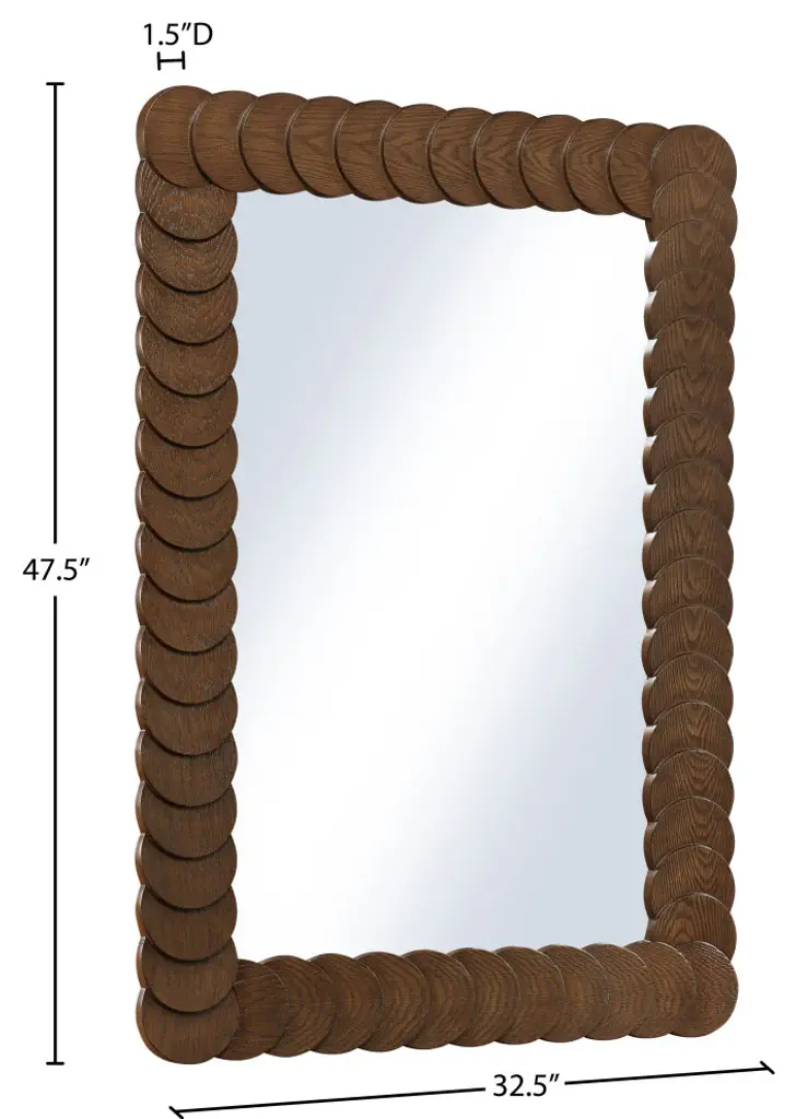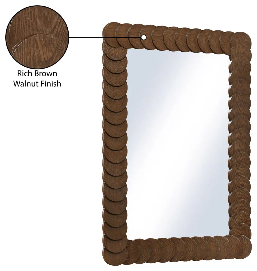 Indulge in the allure of the Brown Revolve Mirror by Meridian Furniture. Its captivating design and luxurious Brown elevate any space with effortless elegance. Crafted with precision and durability in mind, this stunning piece becomes the focal point of gatherings, fostering moments of connection and warmth. Embrace sophistication and style with the Revolve Mirror, a testament to exquisite taste and timeless beauty.Overall Product Dimensions: 32.5" W x 1.5" D x 47.5" HRich Brown Walnut FinishOak VeneerArt Deco Design
