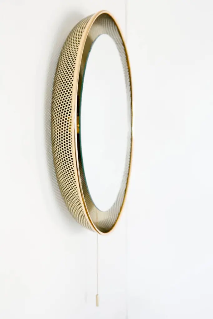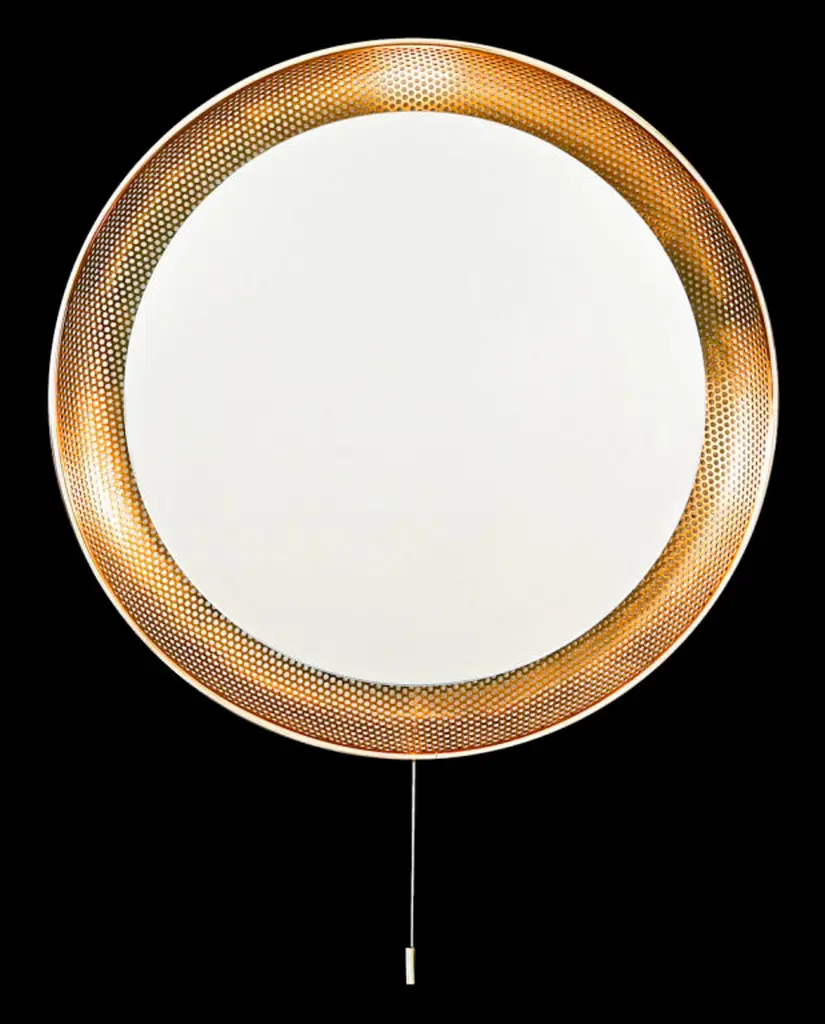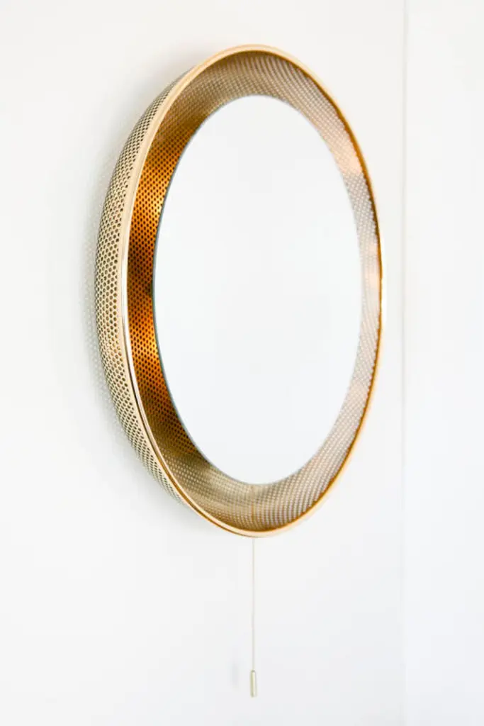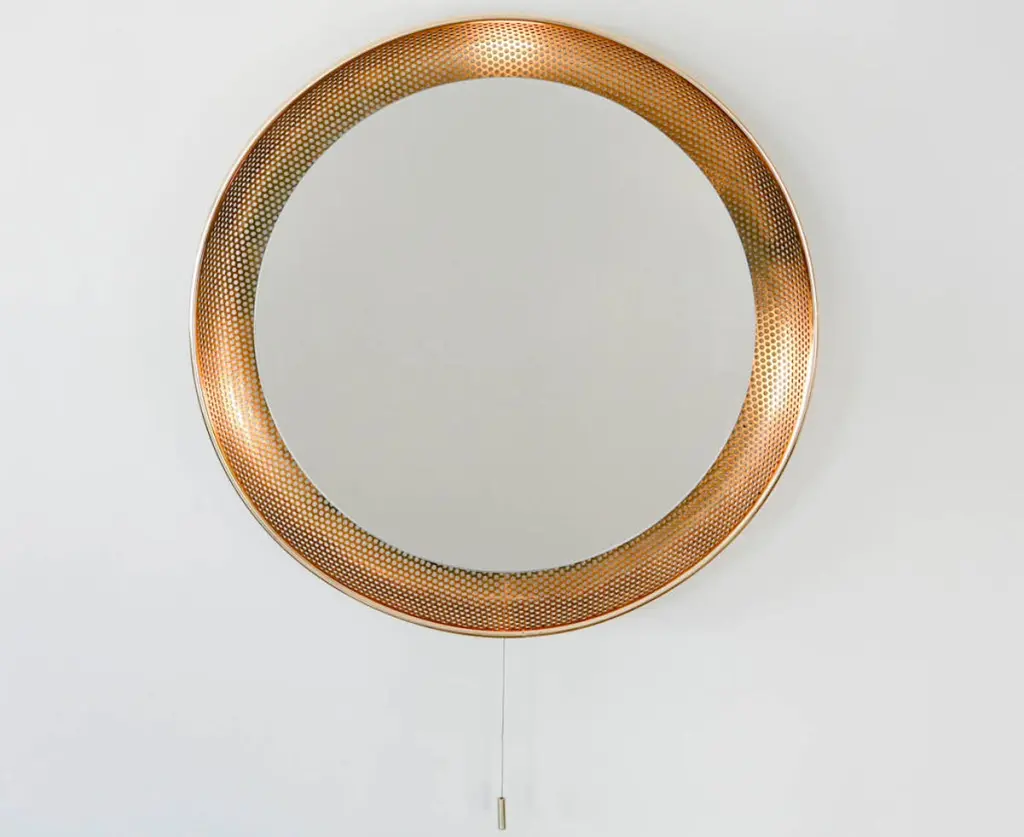 Custom mirror with three lamp illumination from behind mirror.LEAD TIME: 8-10 WEEKS