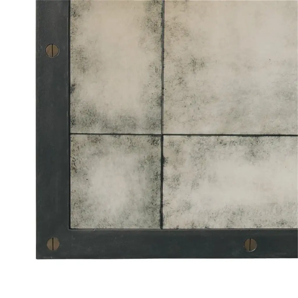 This accent mirror, featuring an antique finish and distressed metal frame, brings a modern and contemporary flair to your home. Its classic frame design seamlessly blends traditional and transitional elements , making it a versatile decorative piece.