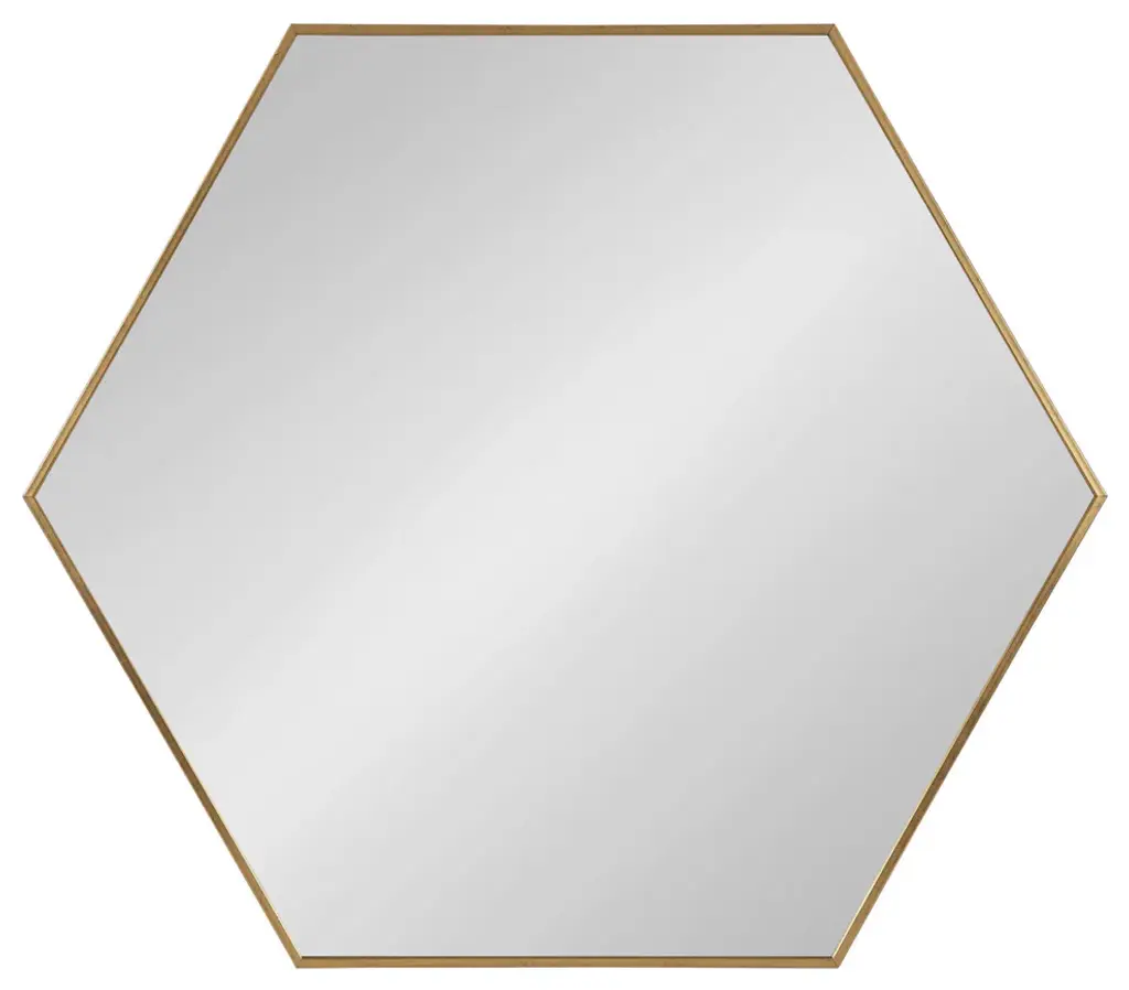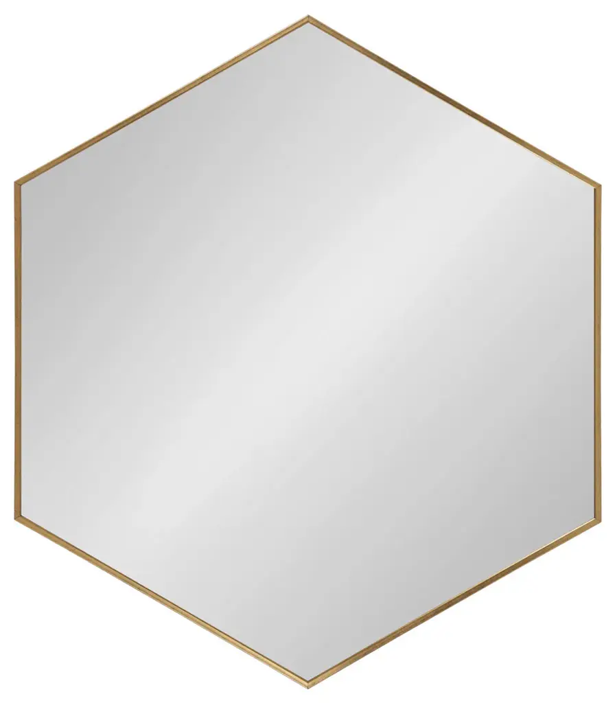 Rhodes Framed Hexagon Wall Mirror, Gold, 30.75x34.75