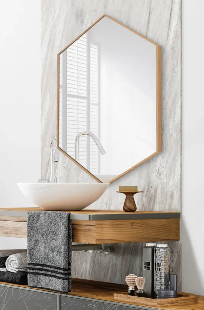 Rhodes Framed Hexagon Wall Mirror, Natural, 22x31