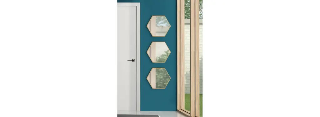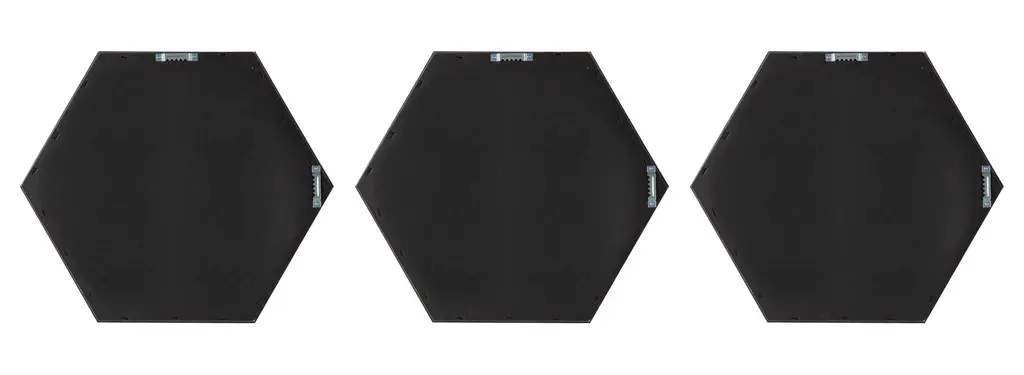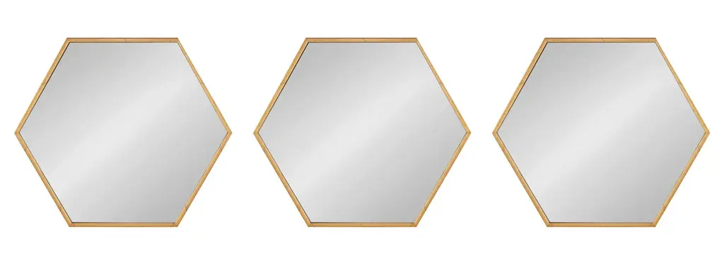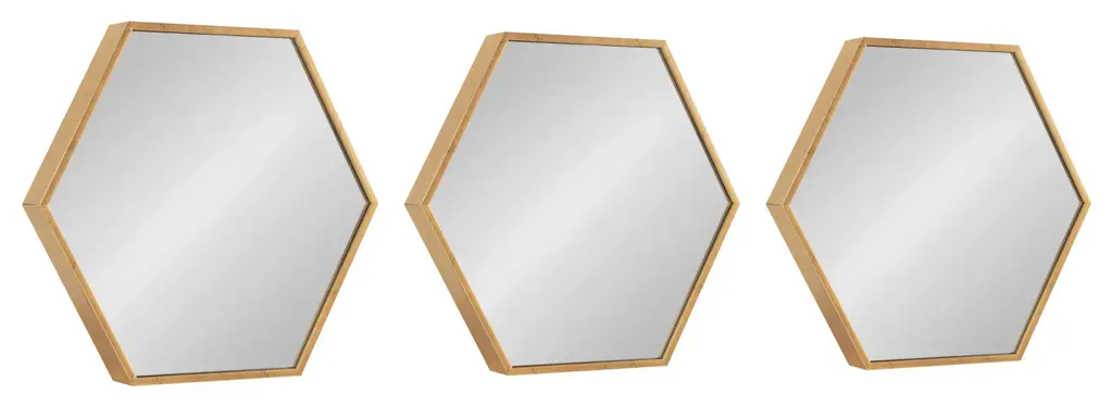 Decorating with a set of mirrors opens up your home while creating an alluring and beautiful wall display. No matter what interior decorating style you want to go with, the Rhodes hexagon mirror set can add a dimension to any wall. Not only can this collection be used as a much-needed wall accessory, but with a bit of imagination, it can become a real focal point of your home. The polished elegance of each mirror's frame enhances the sophisticated glass it surrounds and creates a classic design. Whether this geometric mirror set is displayed on its own or in combination with your other home decor items, it's sure to be an eye-catching exhibit of pure inspiration. The hexagon shape is a great way to break up the straight lines of a vertical or horizontal gallery display. The outside dimensions of this set of hexagon mirrors are 14 inches wide by 16 inches tall. The sawtooth hangers comes installed on the back of each frame, which will keep your set of mirrors flat and secure wherever you hang them.CONTEMPORARY LOOK: The chic style and geometric look of this set of mirrors gives your wall a gorgeous contemporary aestheticPRACTICAL AND DECORATIVE: An attractively framed mirror is the affordable way to decorate your wall while bringing light and space into a roomAMPLE SIZE: With an outside frame measuring 14 inches wide by 16 inches tall, the size and sleek hexagon shape of each Rhodes mirror is a beautiful way to add an abundance of style to an understated roomBEAUTIFUL WALL DISPLAY: This mirror collection will be a striking part of any home decorating scheme whether you display them together or spread throughout your homeHANG VERTICAL OR HORIZONTAL: Hang it any way that works for your space. The attached sawtooth hangers allow for use right out of the box with easy mounting
