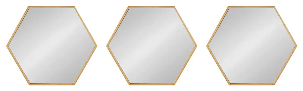 Decorating with a set of mirrors opens up your home while creating an alluring and beautiful wall display. No matter what interior decorating style you want to go with, the Rhodes hexagon mirror set can add a dimension to any wall. Not only can this collection be used as a much-needed wall accessory, but with a bit of imagination, it can become a real focal point of your home. The polished elegance of each mirror''s frame enhances the sophisticated glass it surrounds and creates a classic design. Whether this geometric mirror set is displayed on its own or in combination with your other home decor items, it''s sure to be an eye-catching exhibit of pure inspiration. The hexagon shape is a great way to break up the straight lines of a vertical or horizontal gallery display. The outside dimensions of this set of hexagon mirrors are 14 inches wide by 16 inches tall. The sawtooth hangers comes installed on the back of each frame, which will keep your set of mirrors flat and secure wherever you hang them.• CONTEMPORARY LOOK: The chic style and geometric look of this set of mirrors gives your wall a gorgeous contemporary aesthetic• PRACTICAL AND DECORATIVE: An attractively framed mirror is the affordable way to decorate your wall while bringing light and space into a room• AMPLE SIZE: With an outside frame measuring 14 inches wide by 16 inches tall, the size and sleek hexagon shape of each Rhodes mirror is a beautiful way to add an abundance of style to an understated room• BEAUTIFUL WALL DISPLAY: This mirror collection will be a striking part of any home decorating scheme whether you display them together or spread throughout your home• HANG VERTICAL OR HORIZONTAL: Hang it any way that works for your space. The attached sawtooth hangers allow for use right out of the box with easy mounting